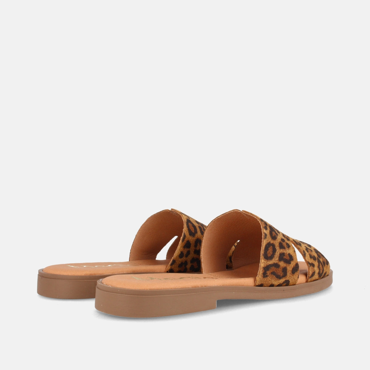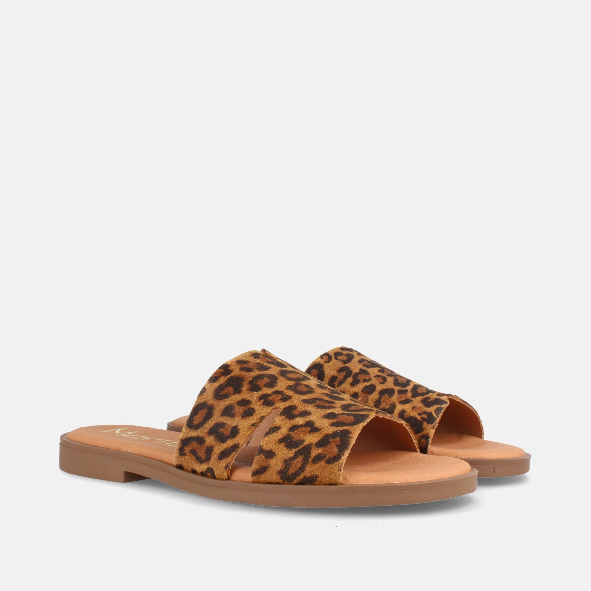 SANDALIA PLANA TIPO ZUECO PARA MUJER DE PIEL ANGELA LEOPARDO
