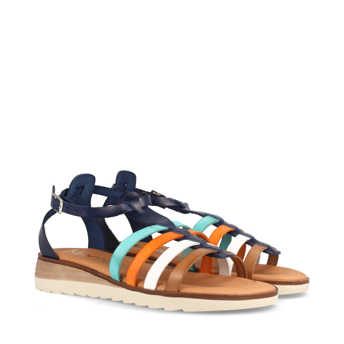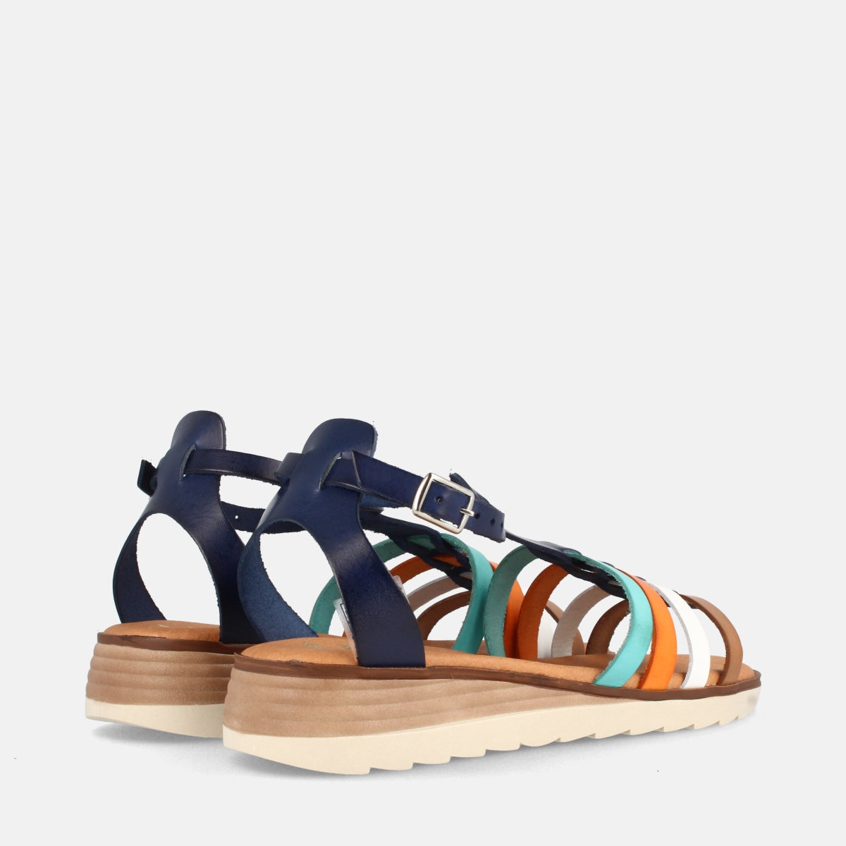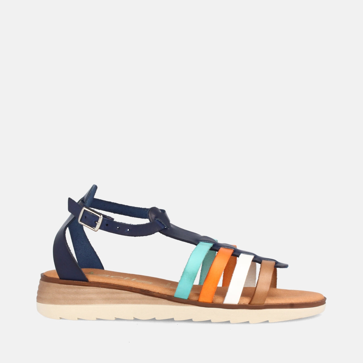 SANDALIAS PARA MUJER CON CUÑA BAJA ESTILO CANGREJERA EN PIEL ANABELLA MULTIBLUE