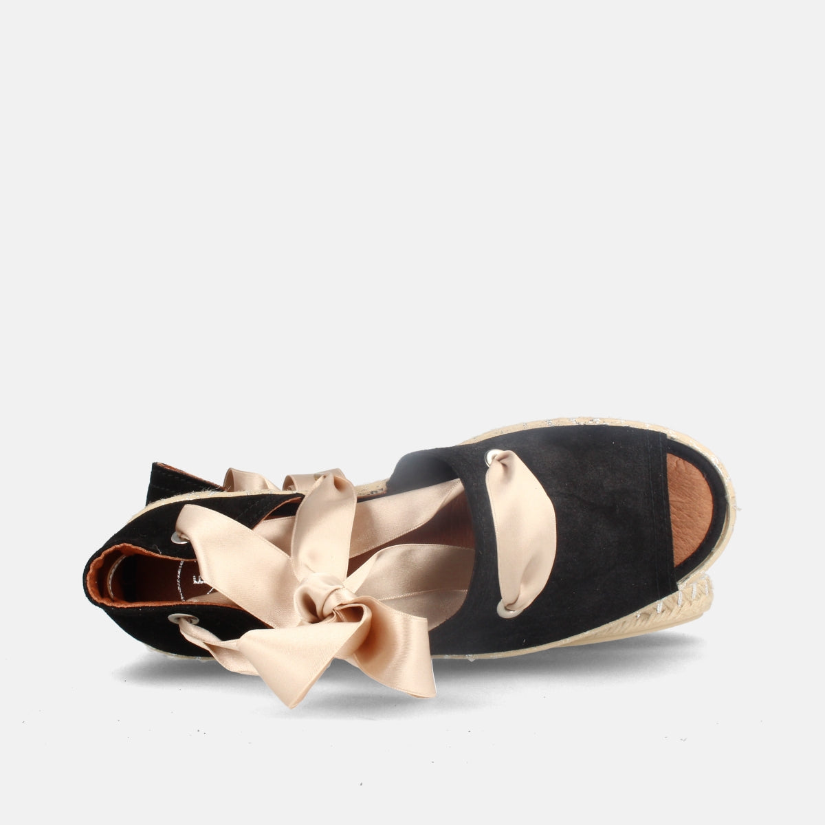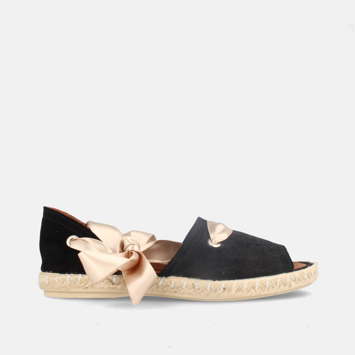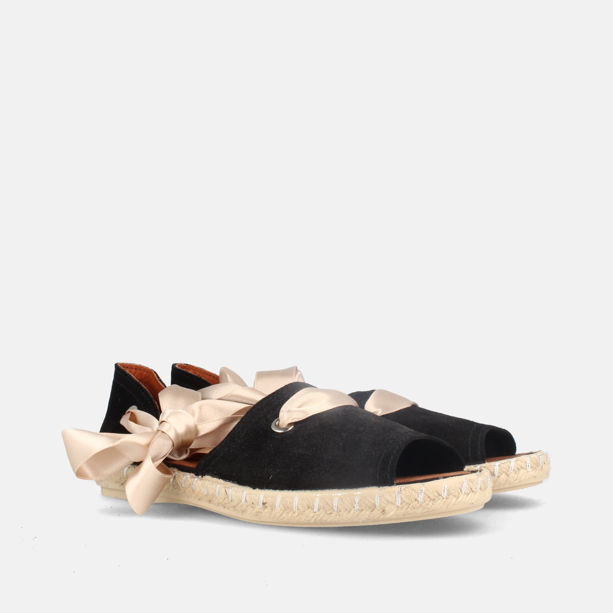 Alpargatas para mujer en serraje con lazada y piso yute Loana negro