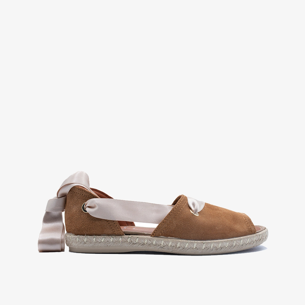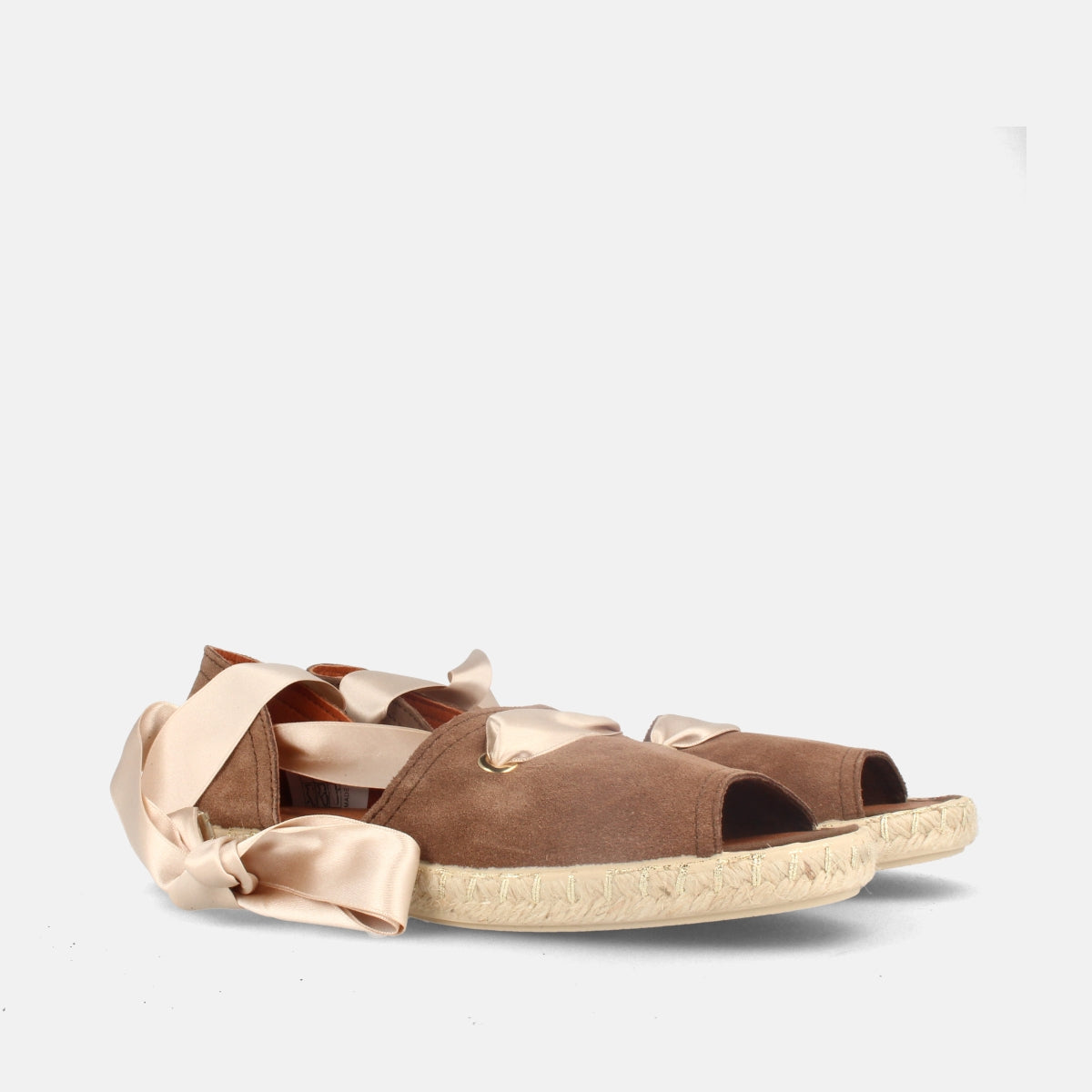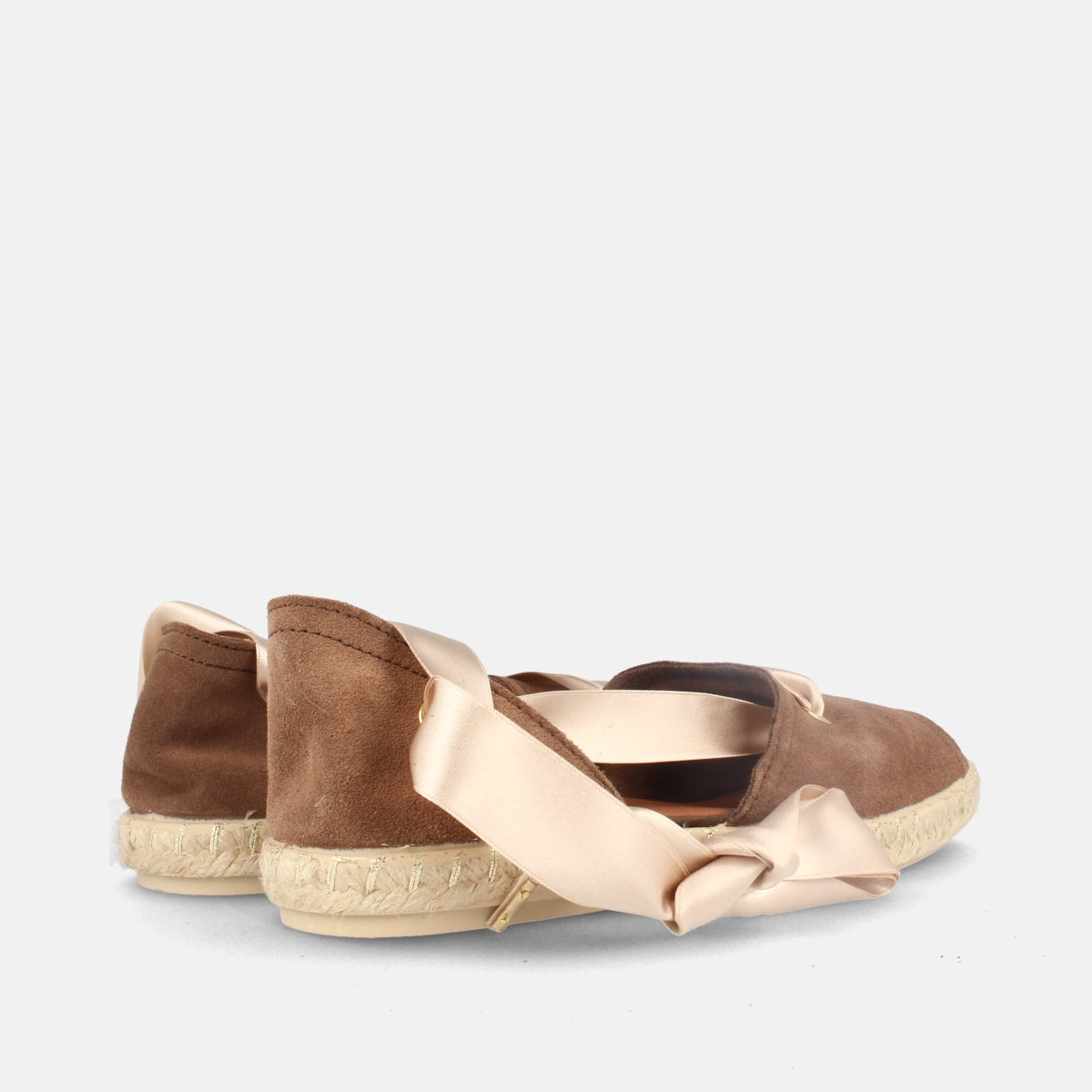 Alpargatas para mujer en serraje con lazada y piso yute Loana visón