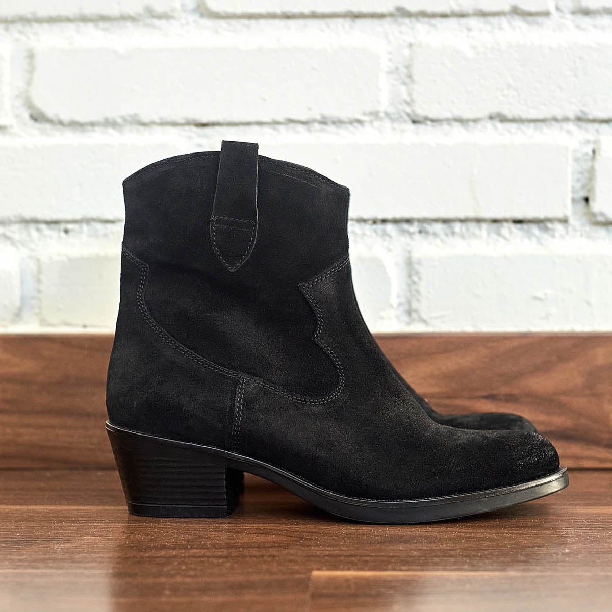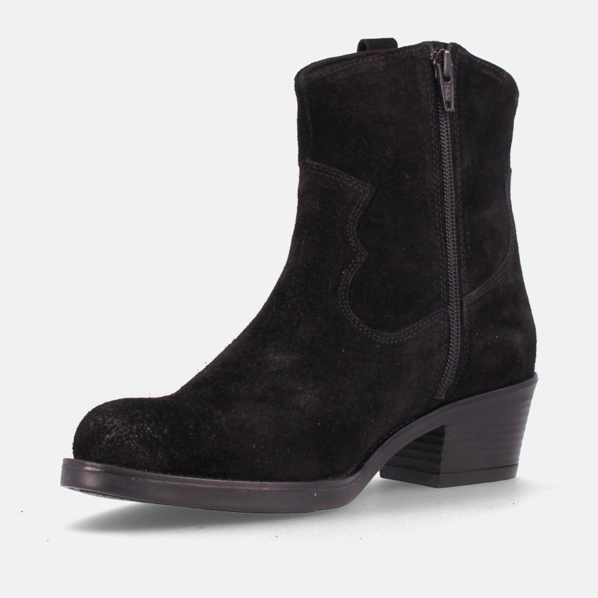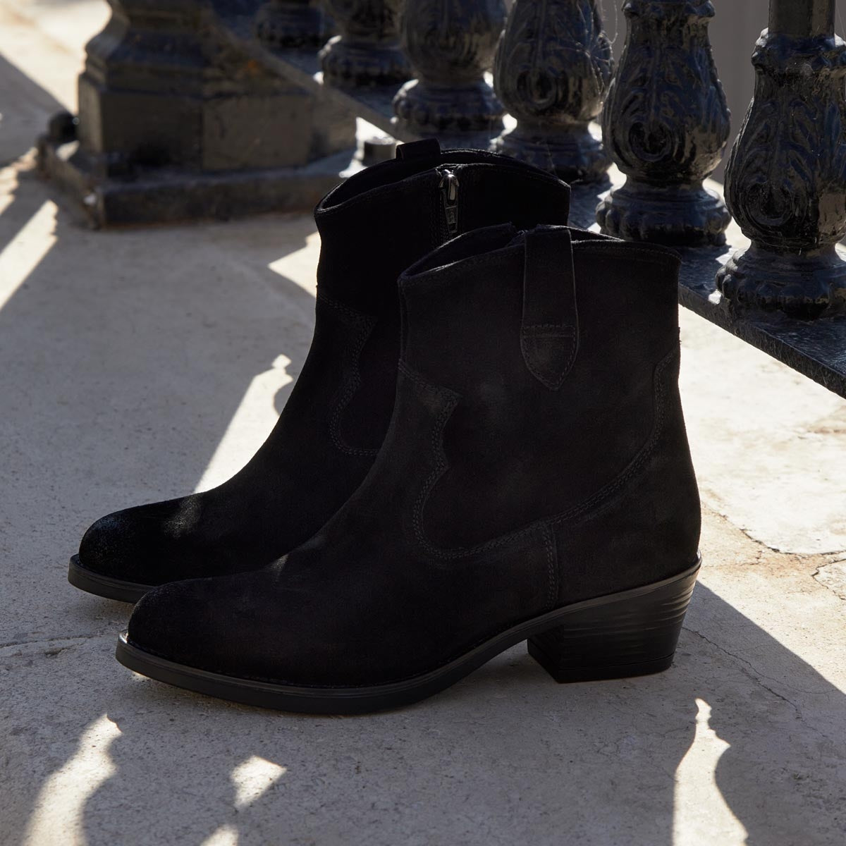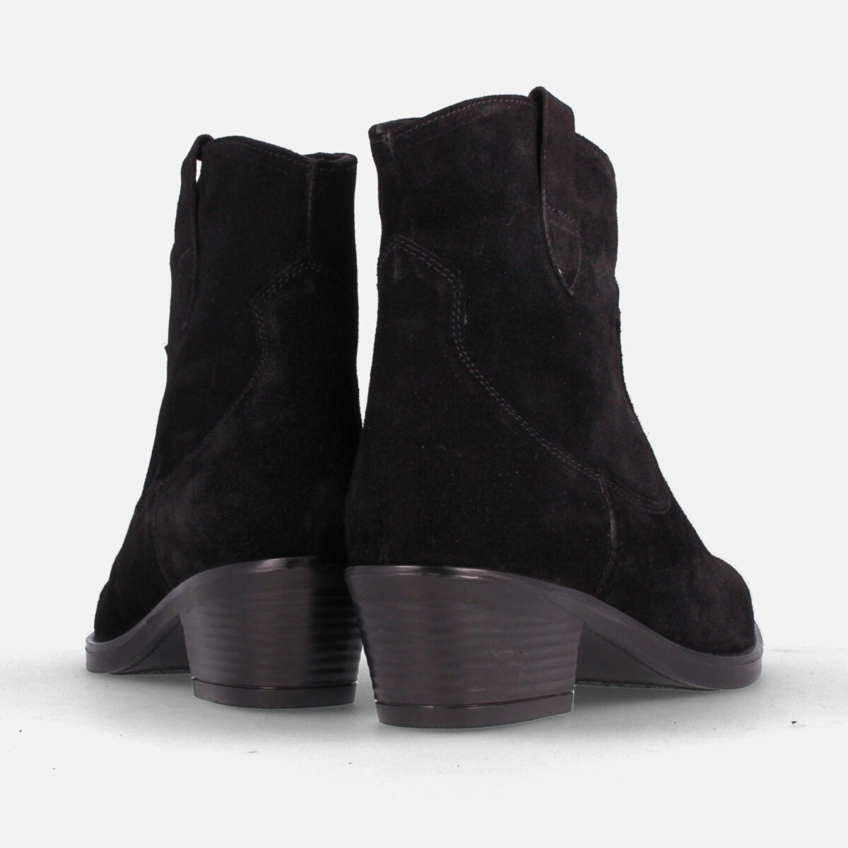 Botín cowboy en color serraje negro para mujer con altura de 4cm de la Colección Otoño/invierno de Marila Shoes. Forro interior en microfibra y planta de piel. ¿Estás preparada para aguantar toda la jornada? con estos botines desde luego que si.