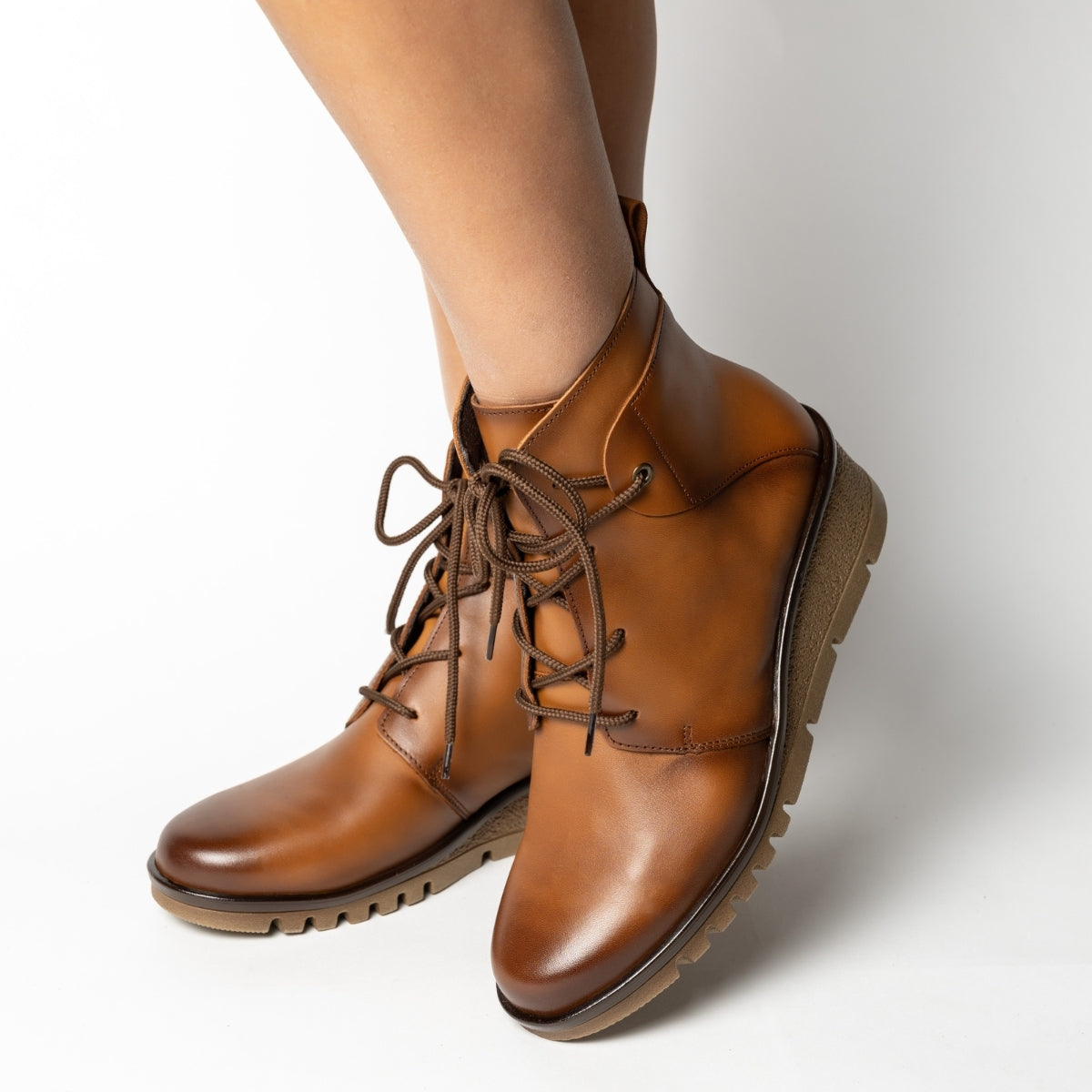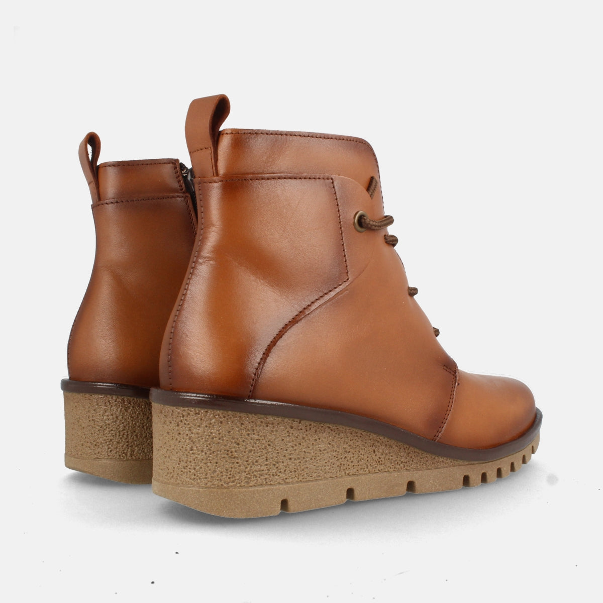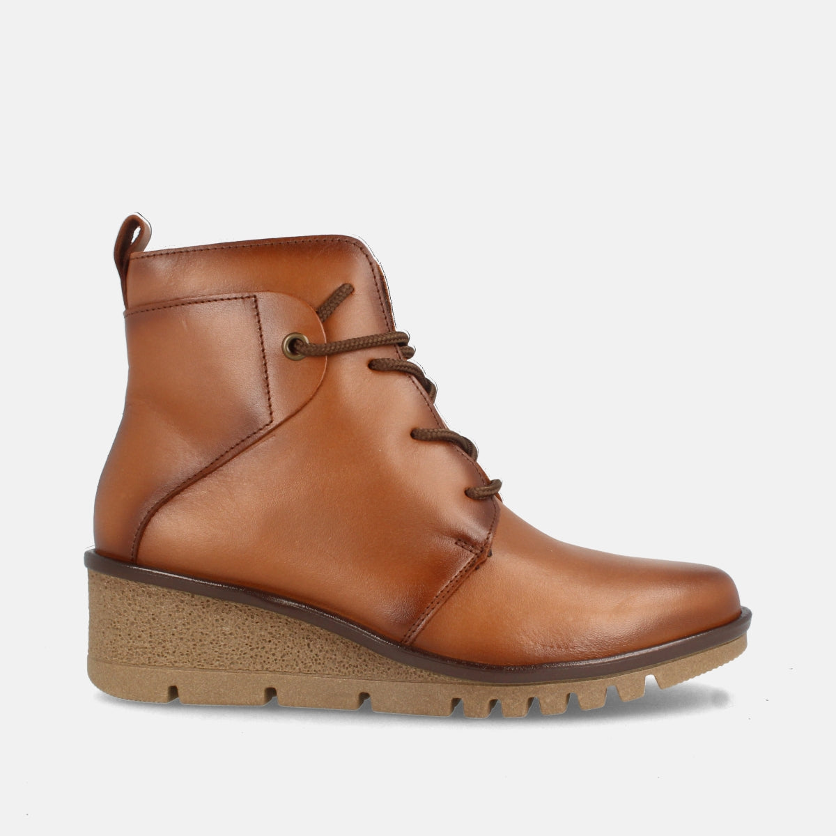 BOTÍN DE PIEL CON CUÑA Y CORDONES UBEDA DORE