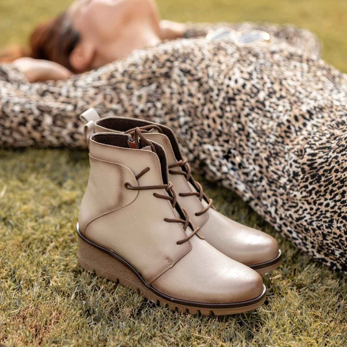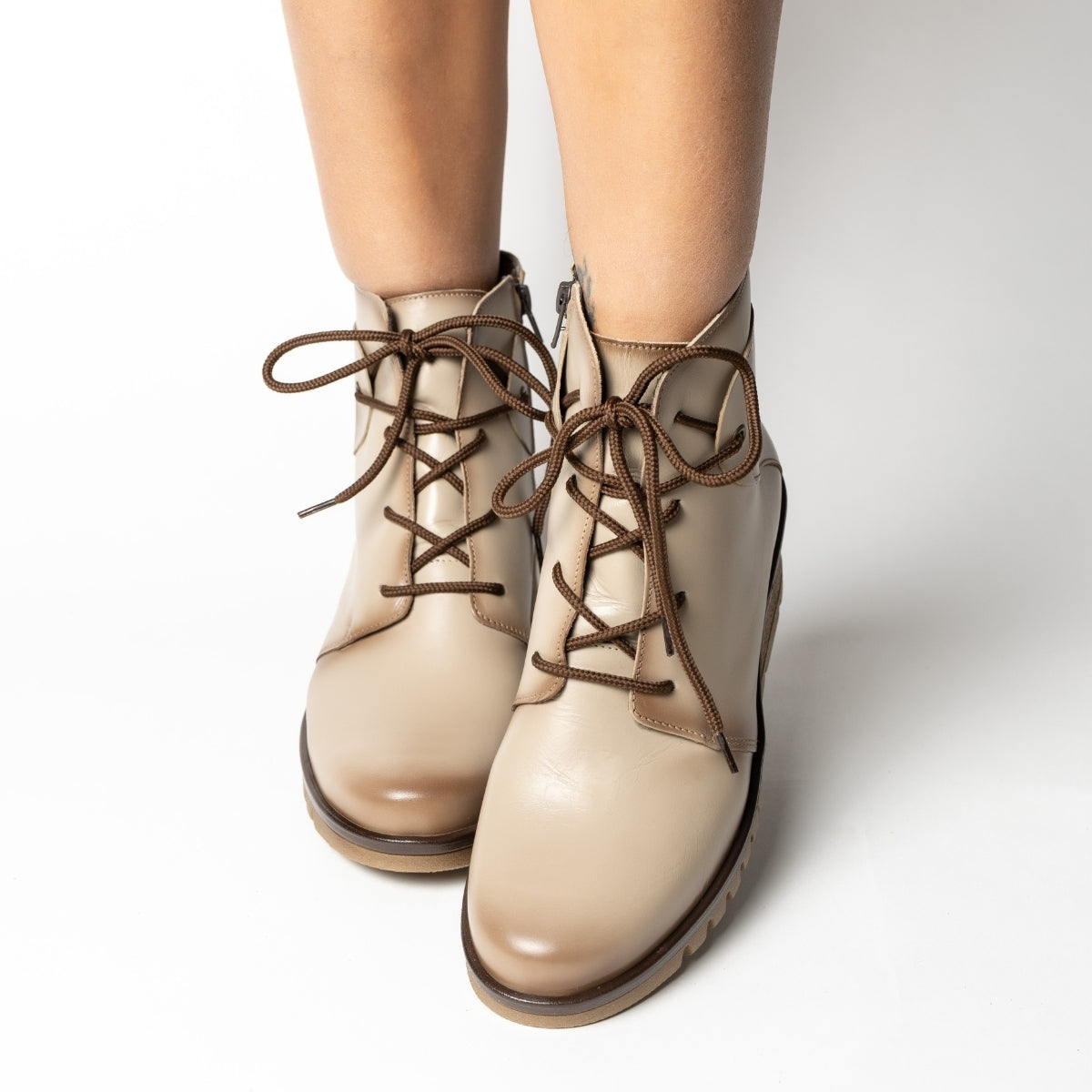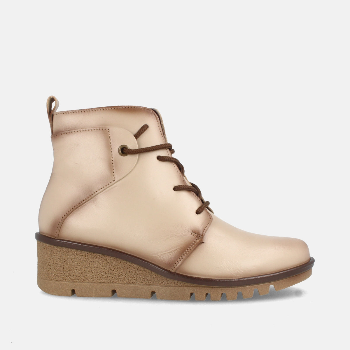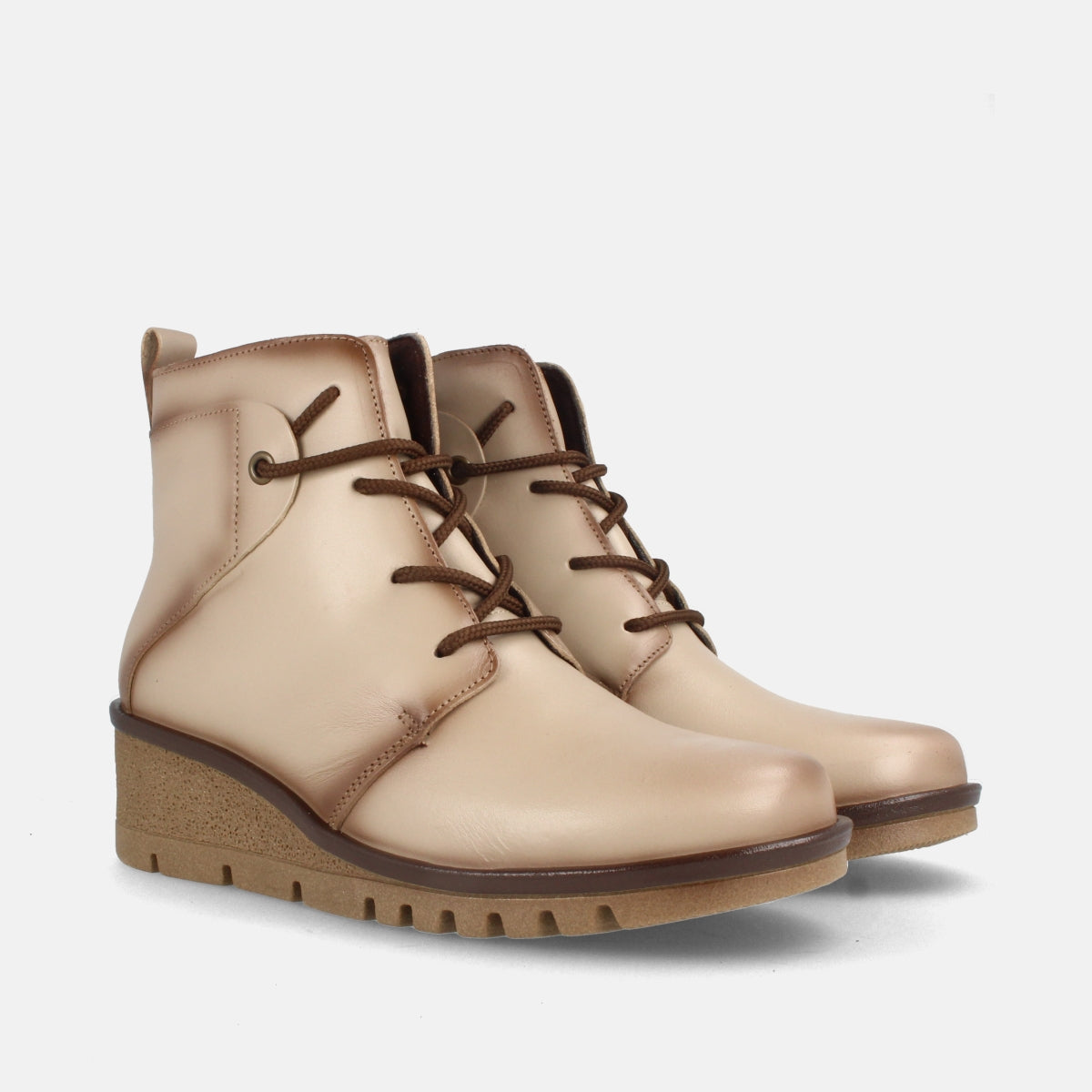 BOTÍN DE PIEL CON CUÑA Y CORDONES UBEDA HIELO