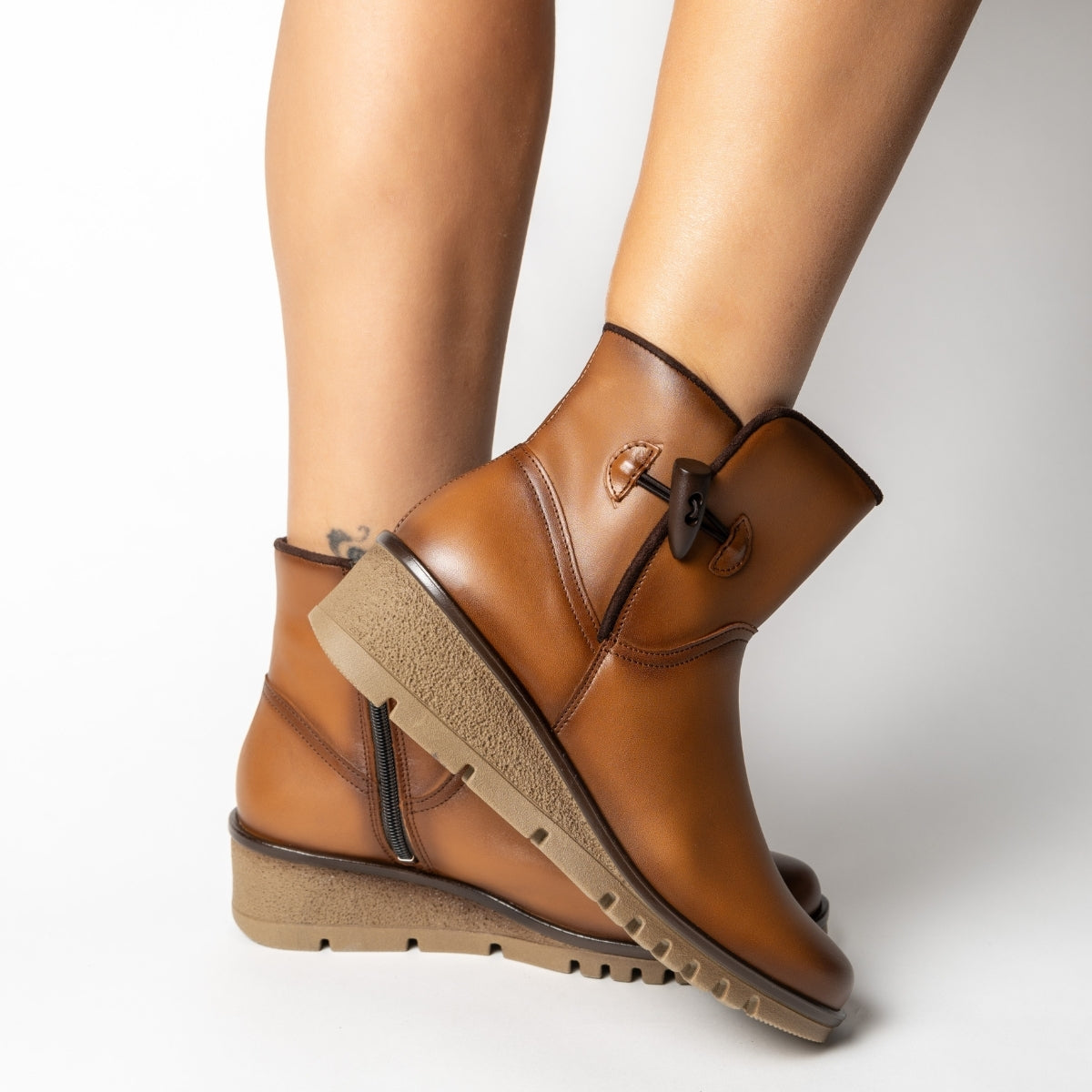 BOTÍN DE PIEL CON CUÑA Y PASADOR YECLA DORE