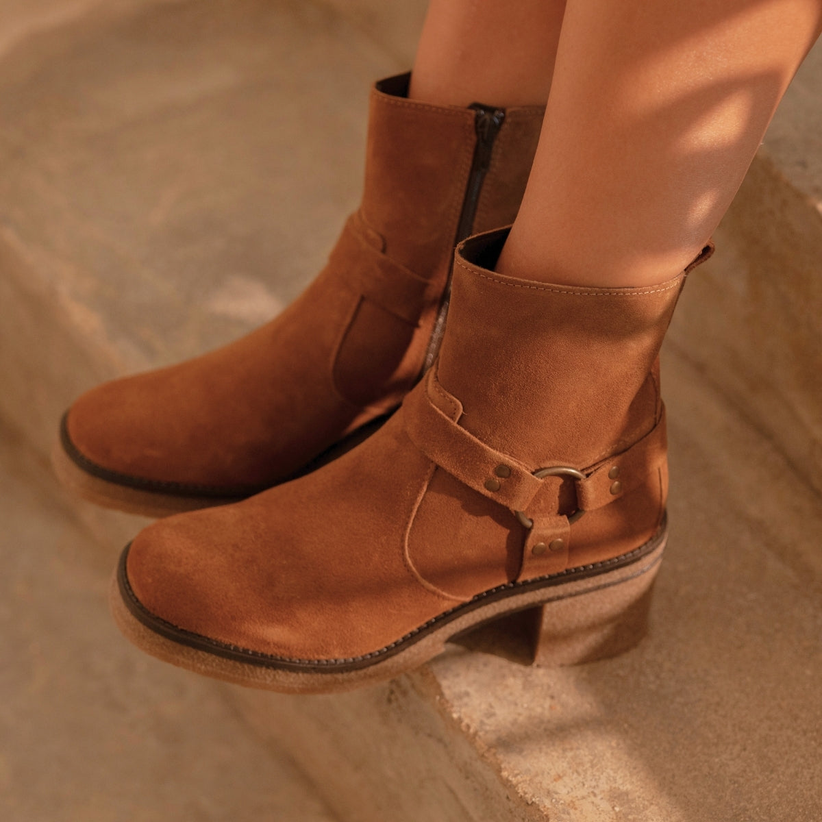 El modelo Neo de Marila Shoes es un botín con personalidad que combina el estilo biker con la elegancia del serraje en color roble. Confeccionado artesanalmente en España con piel natural de primera calidad, garantiza resistencia, suavidad y un aspecto sofisticado de inspiración casual.