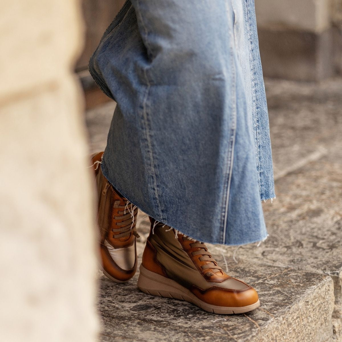 Botín de piel para mujer con plantilla acolchada y extraible ERMITA OCRE