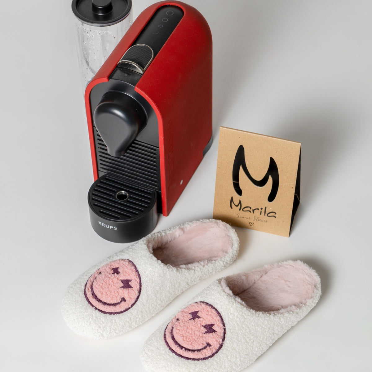 Nuestro modelo Candy en color crudo y rosa, tiene un diseño divertido en forma de carita sonriente en la parte frontal.