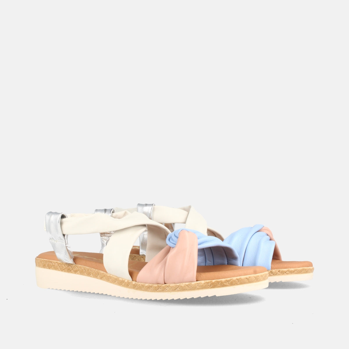 Sandalia confort con cuña media fabricada en piel multipastel – Marila Shoes