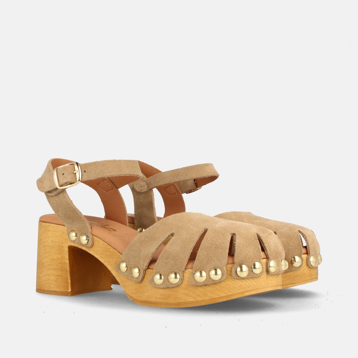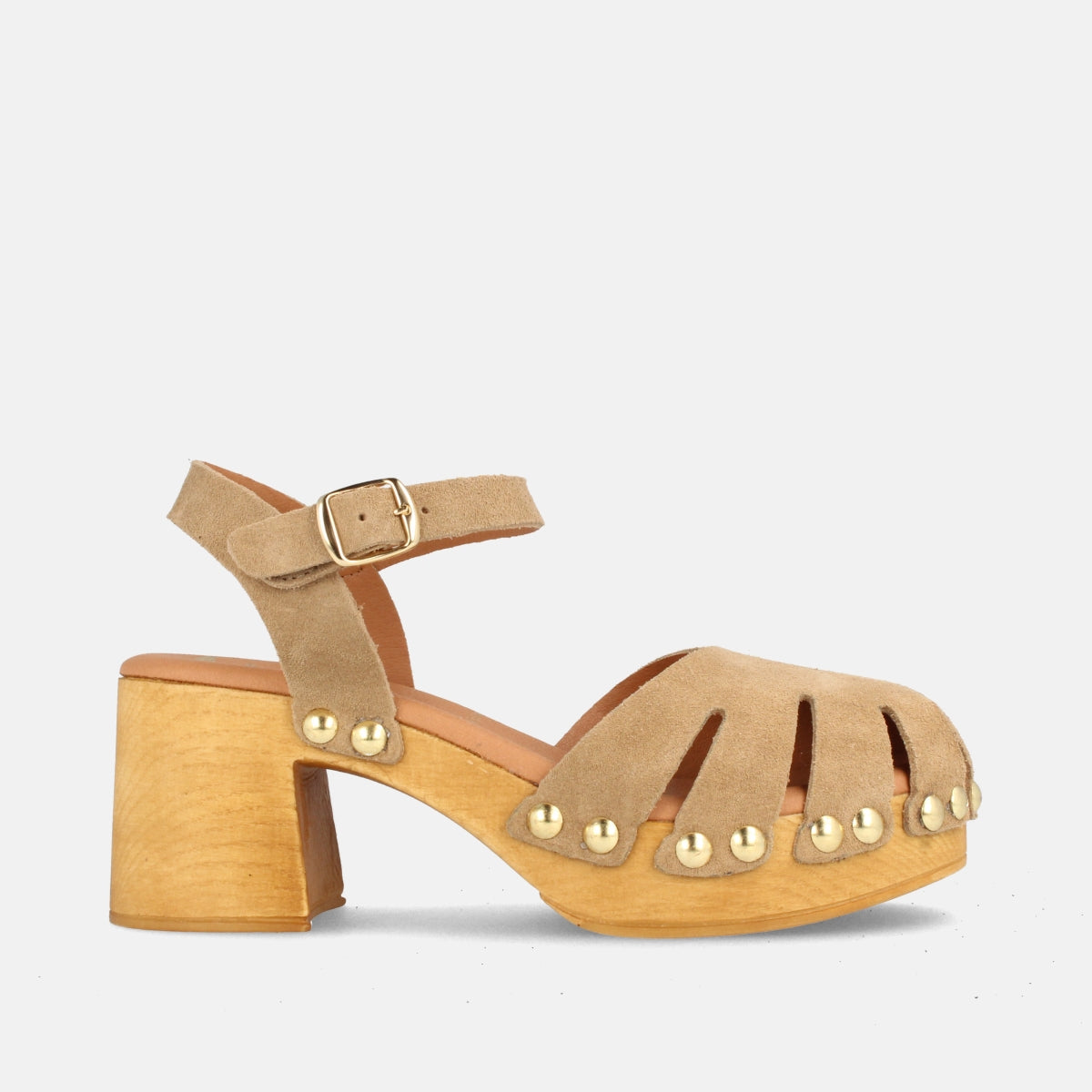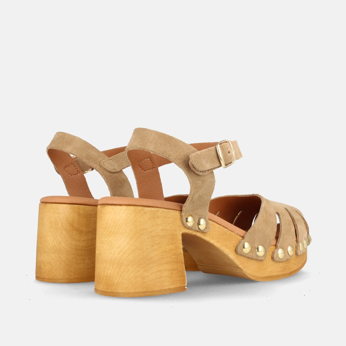 SANDALIA DE PARA MUJER CON PLATAFORMA Y TACÓN ALTO EN SERRAJE HOUSTON MUSHROOM