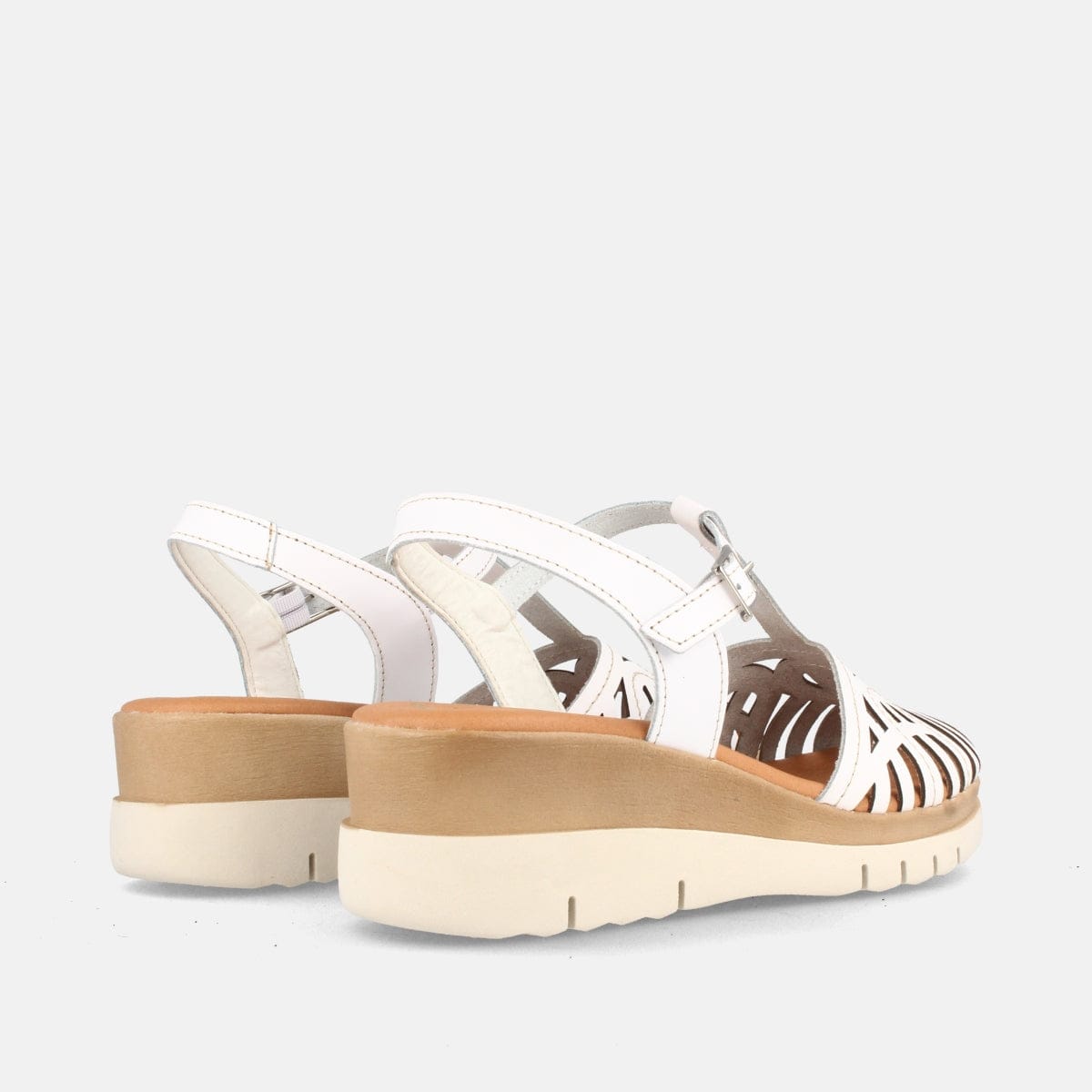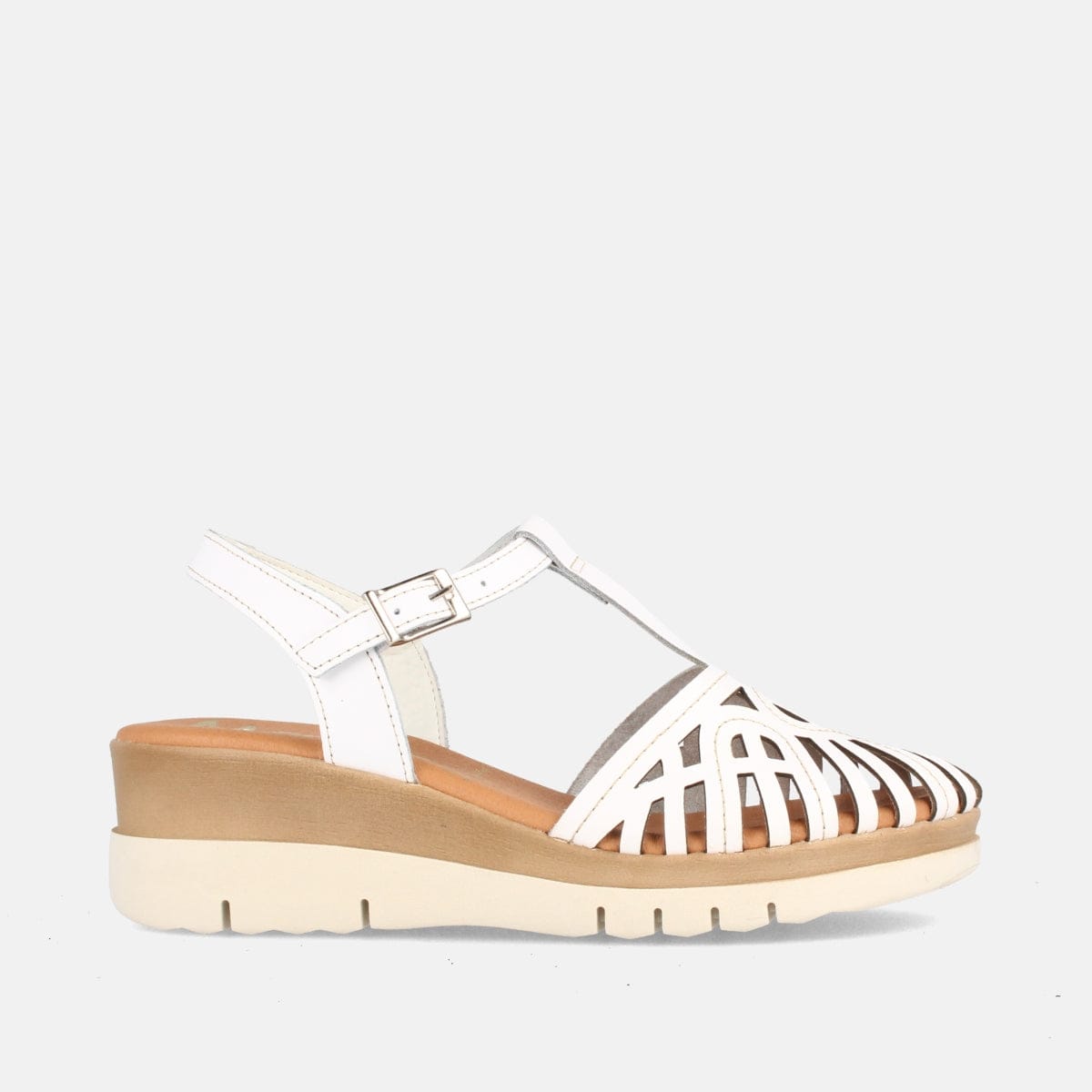 SANDALIA DE PIEL PARA MUJER CON CON CUÑA TAY BLANCO