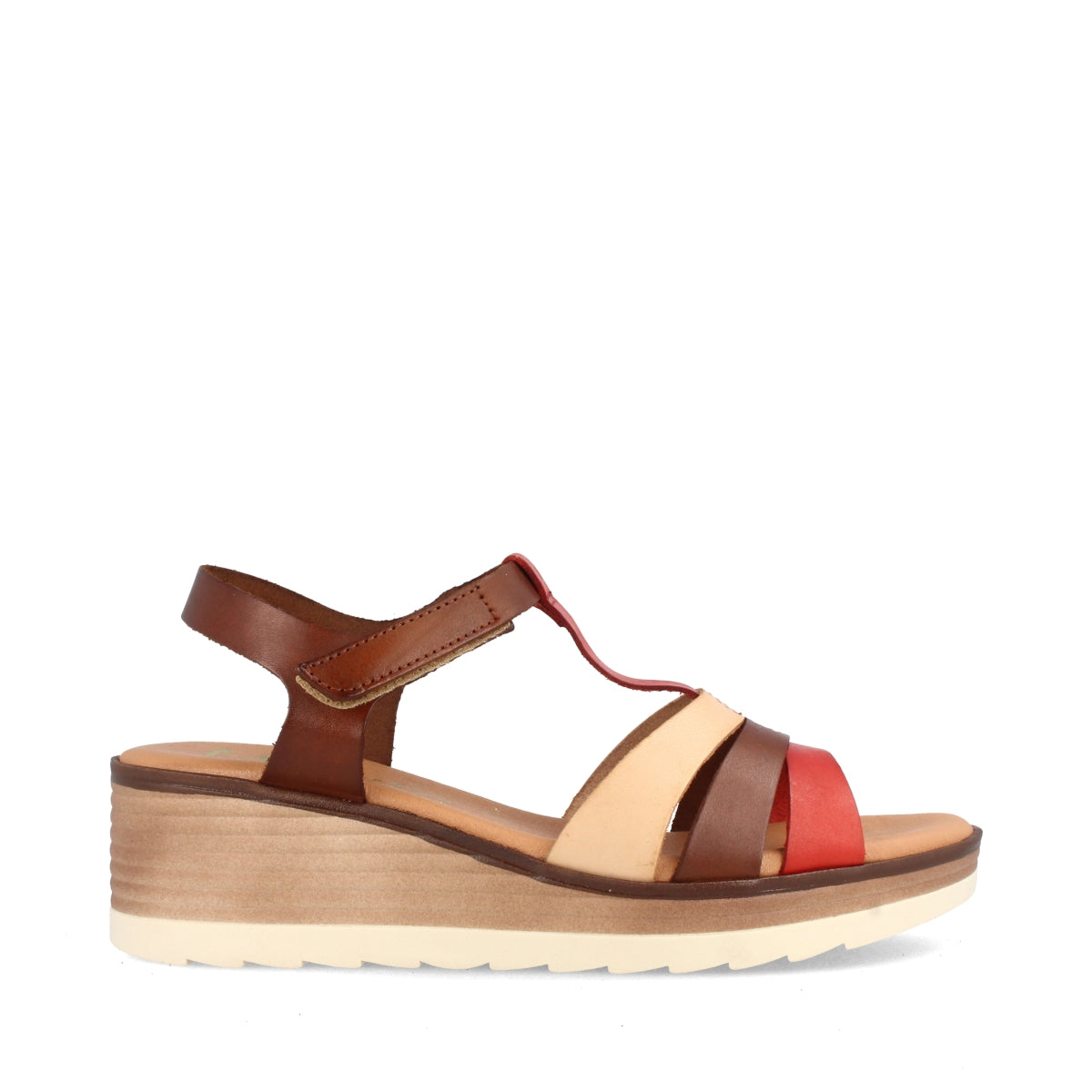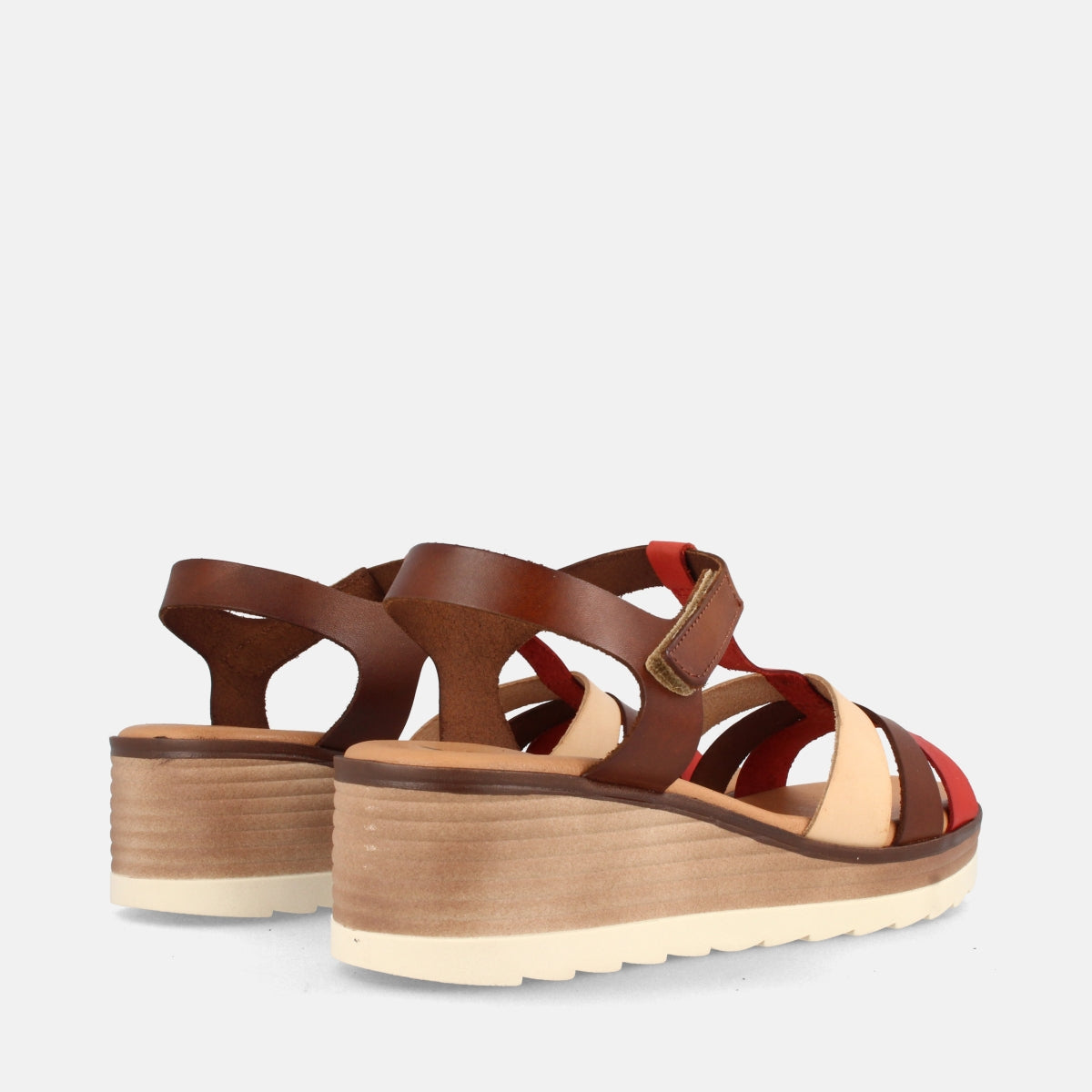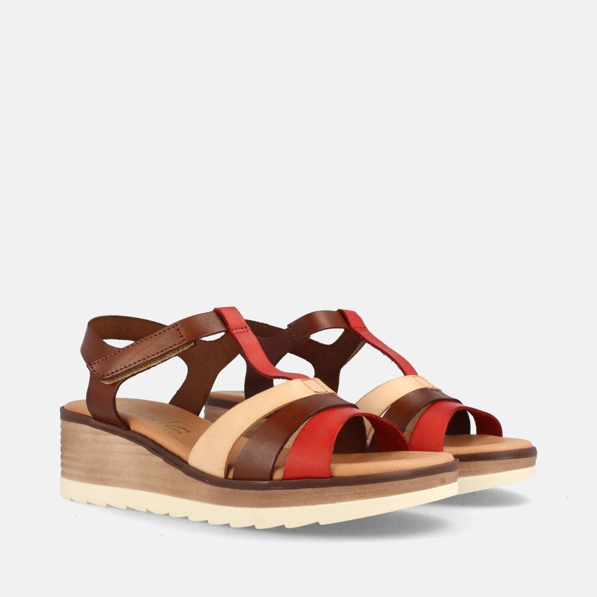 SANDALIA DE PIEL PARA MUJER CON CUÑA MEDIA DHABI COMBI TEJA
