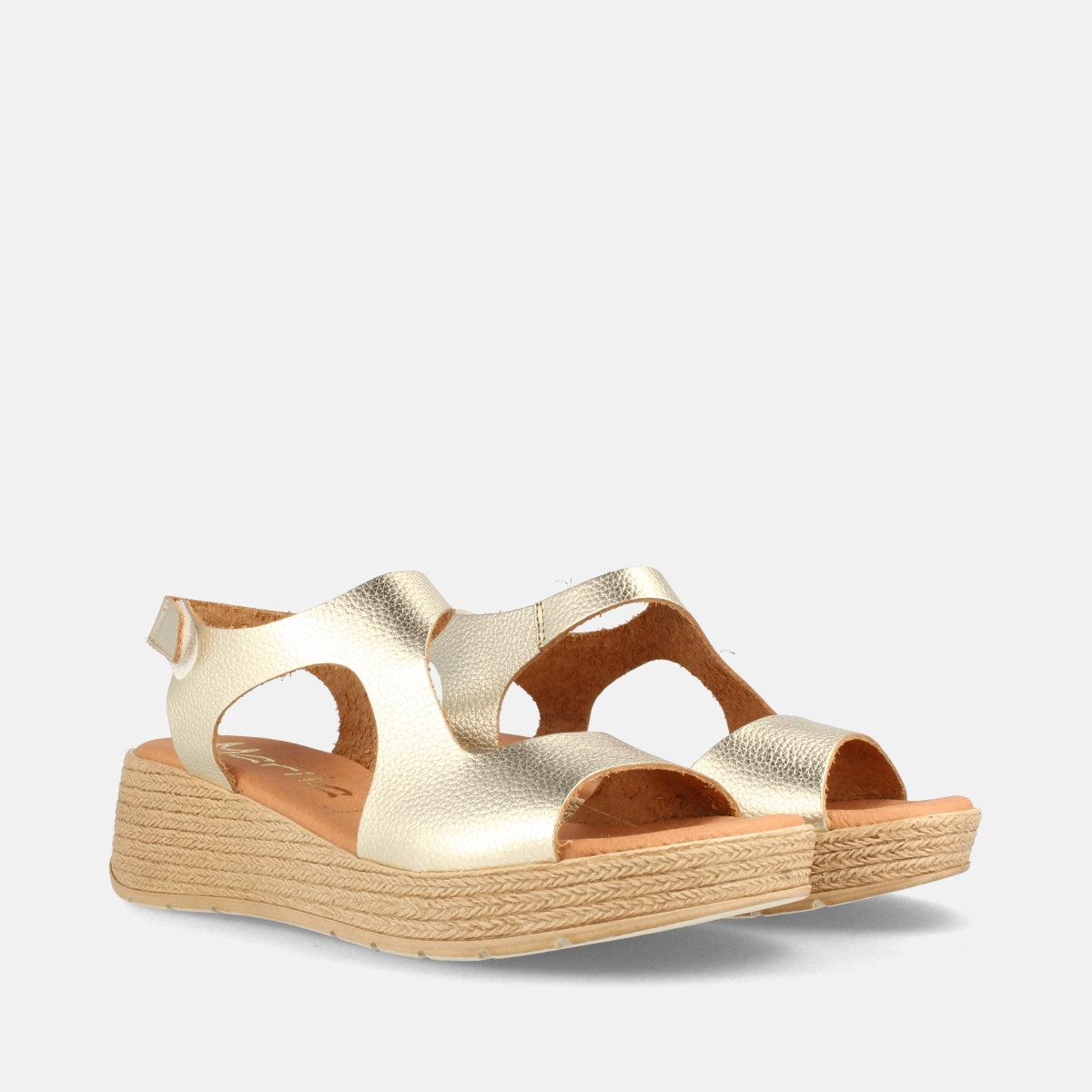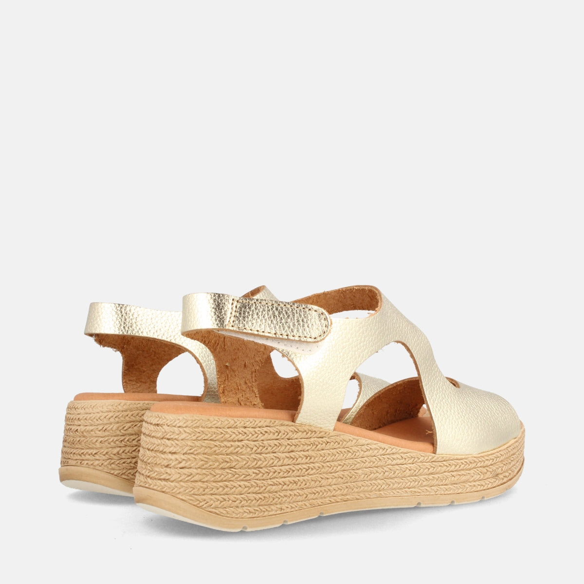 SANDALIA DE PIEL PARA MUJER CON CUÑA MEDIA DUSANBE PLATINO