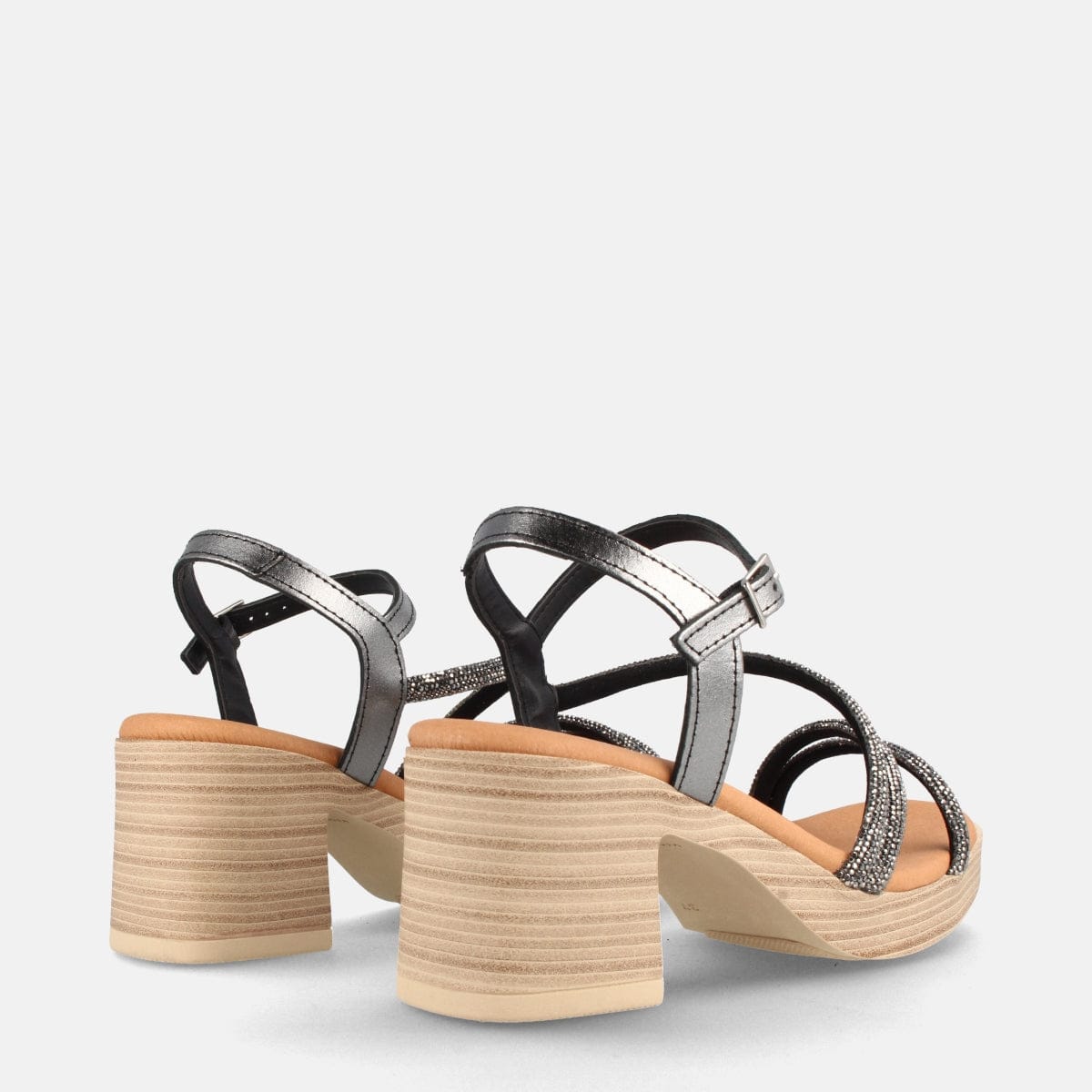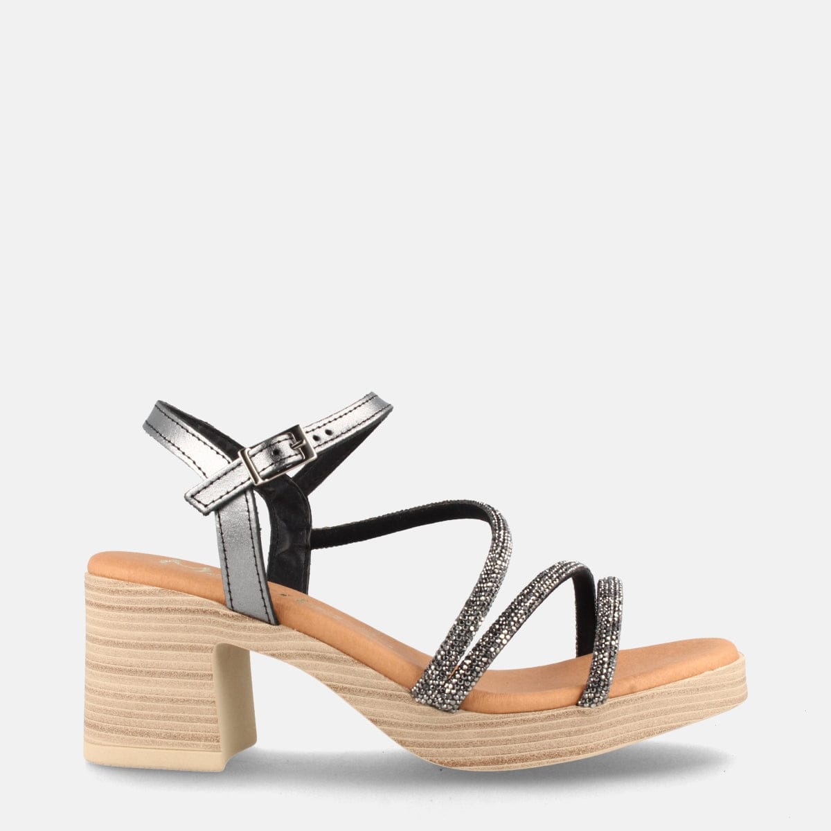 SANDALIA DE PIEL PARA MUJER CON TACÓN ALTO MONRO ACERO