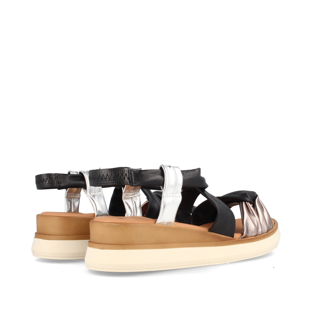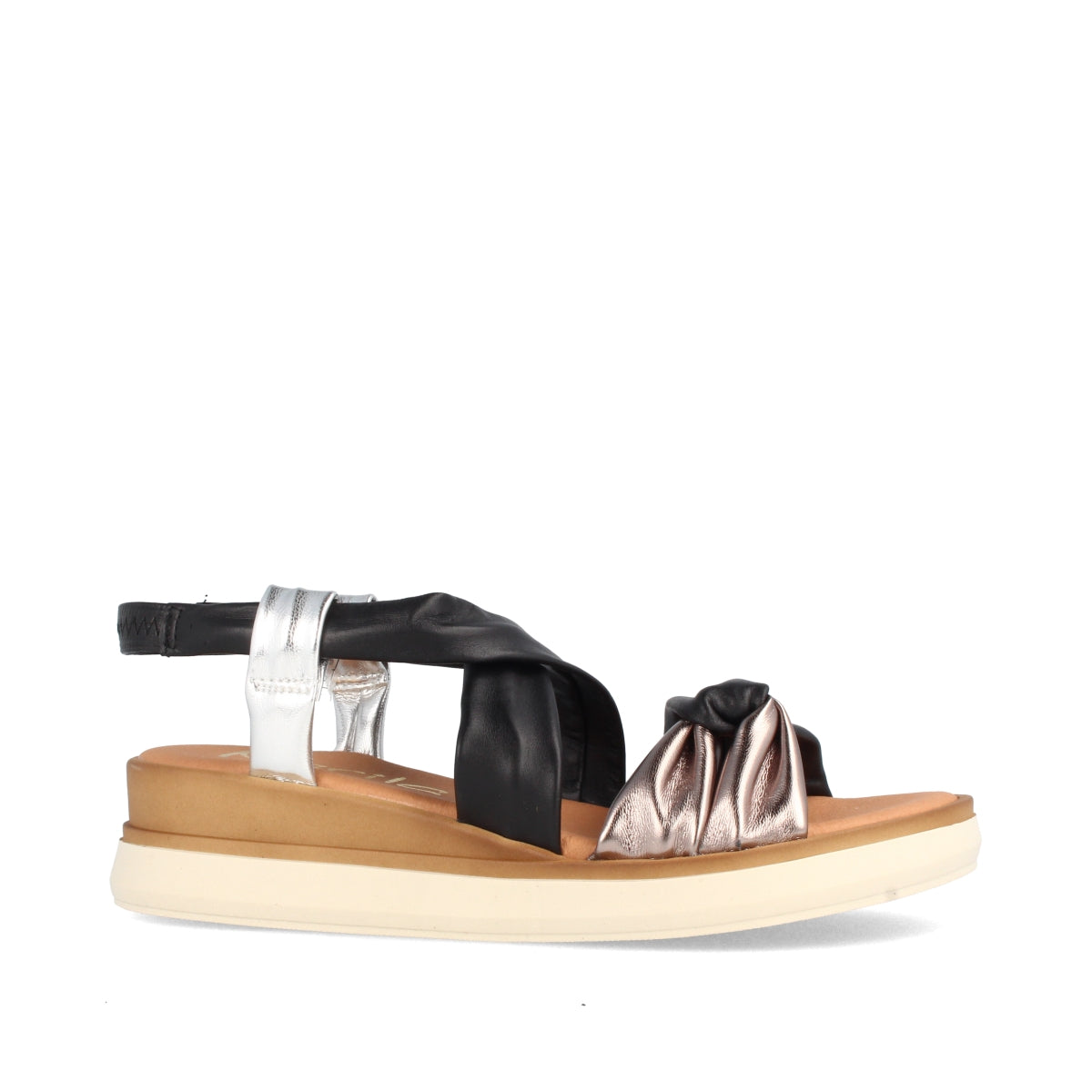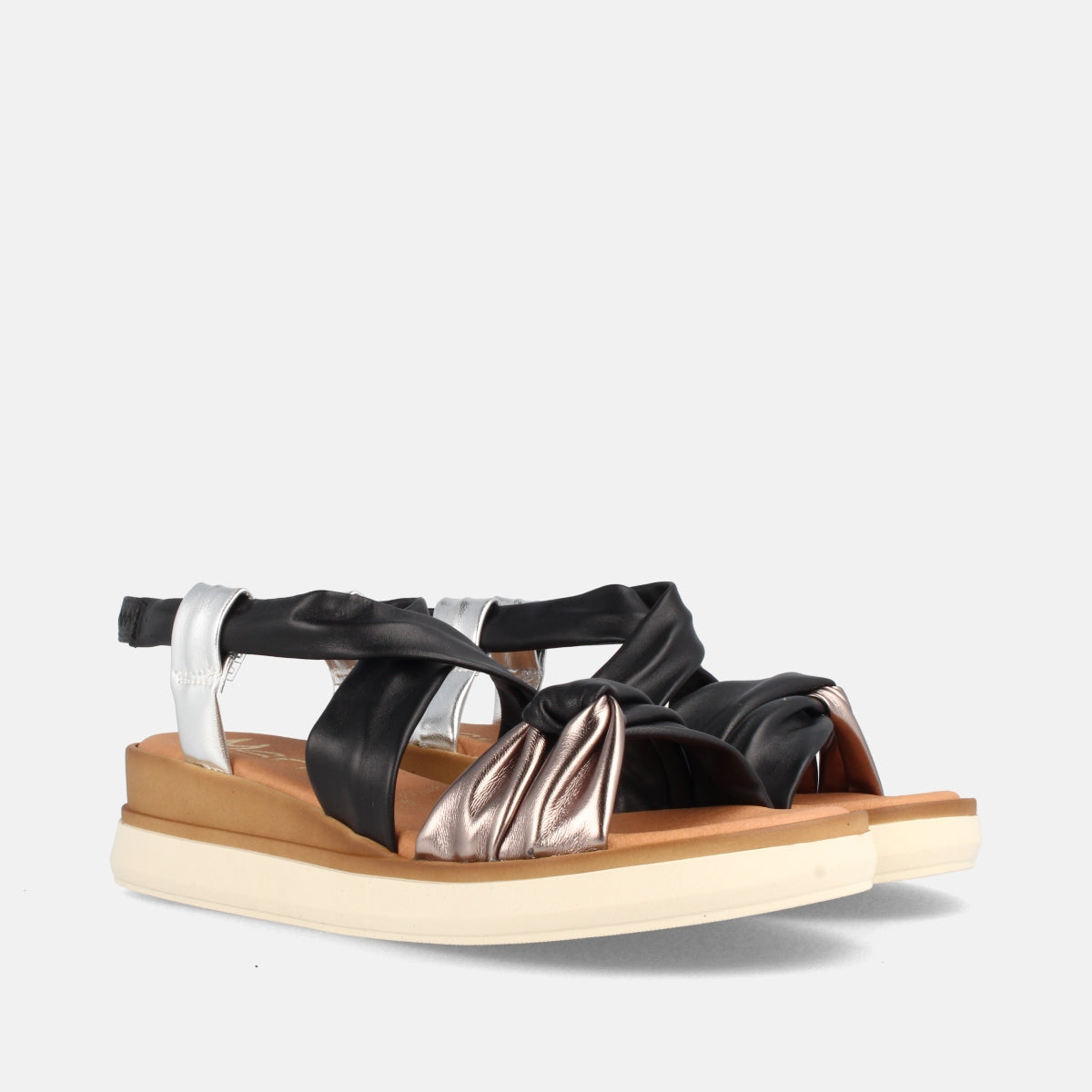SANDALIA PARA MUJER CON CUÑA EN PIEL MARGARITA MULTIMETAL Y NEGRO