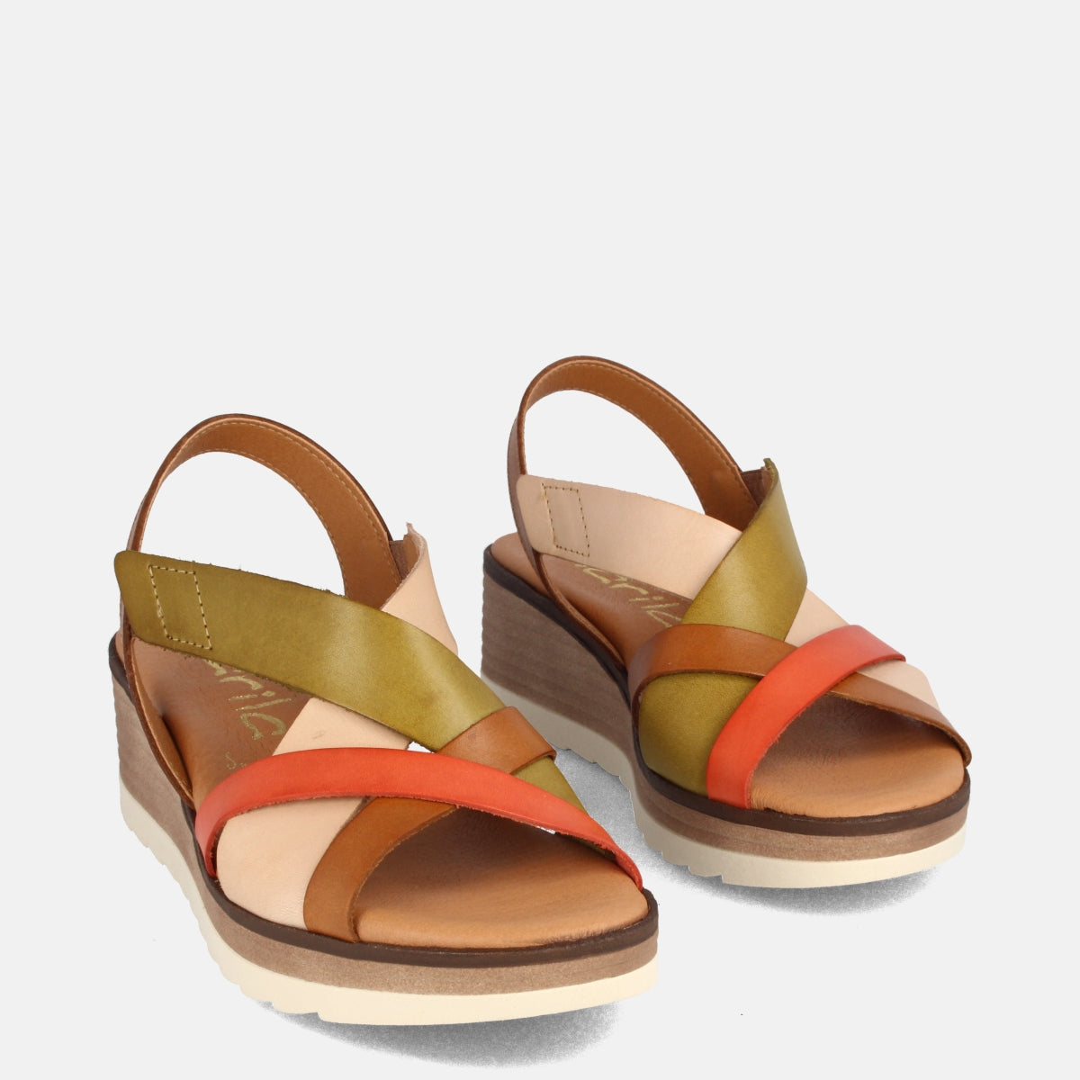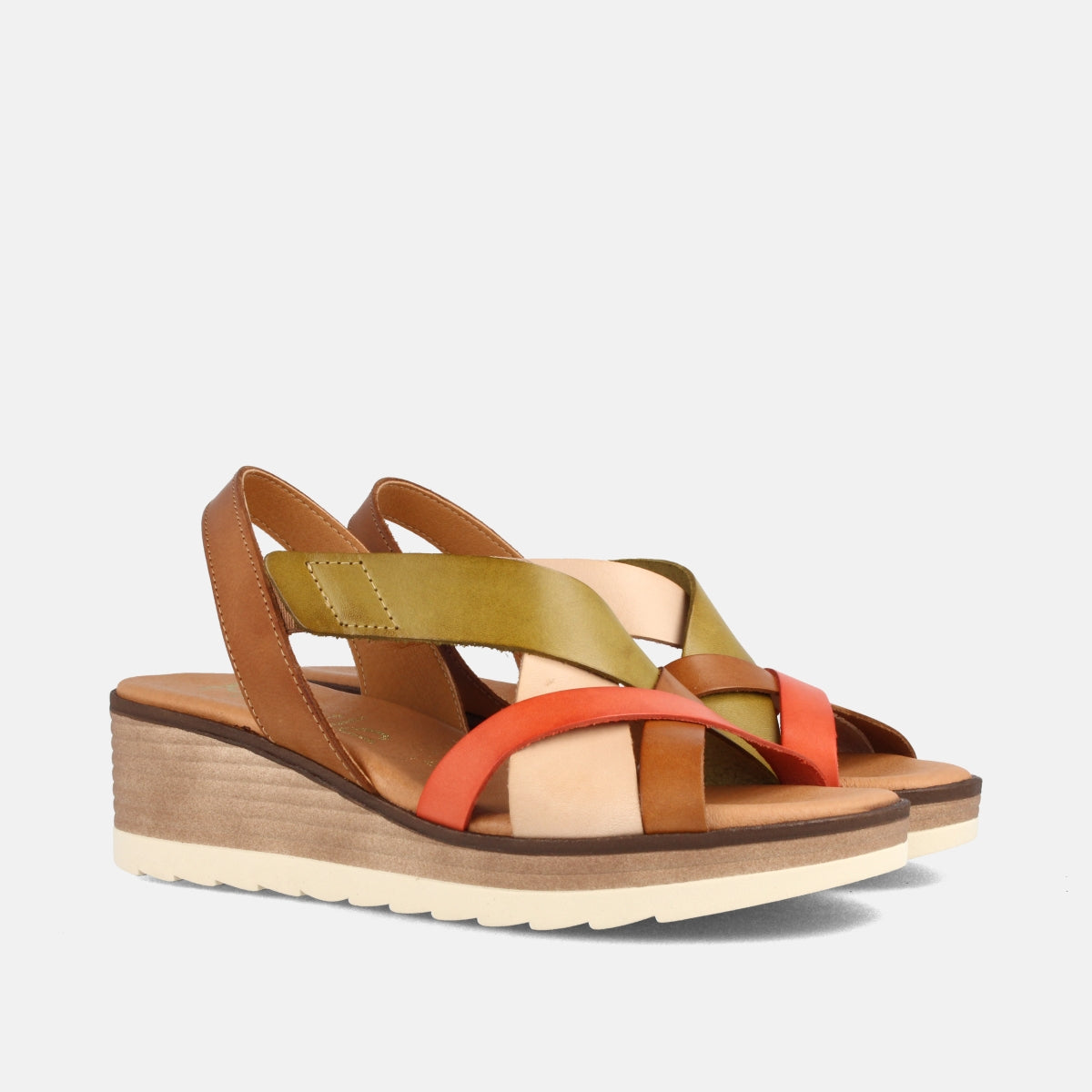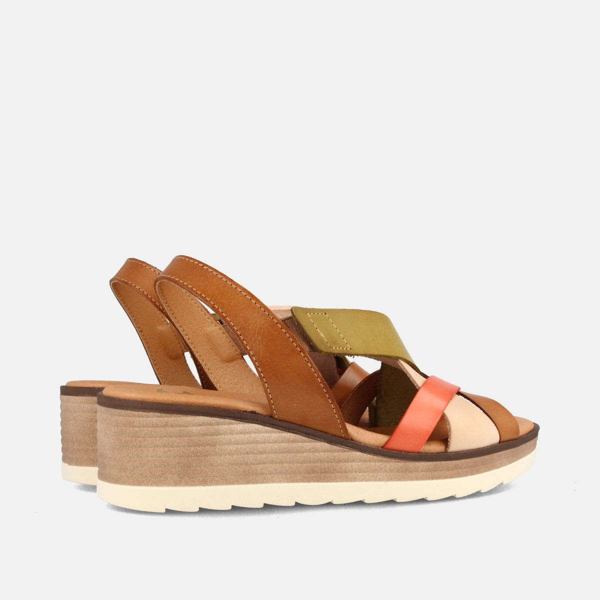 SANDALIA PARA MUJER CON CUÑA MEDIA EN PIEL CELESTE MULTIAVELLANA