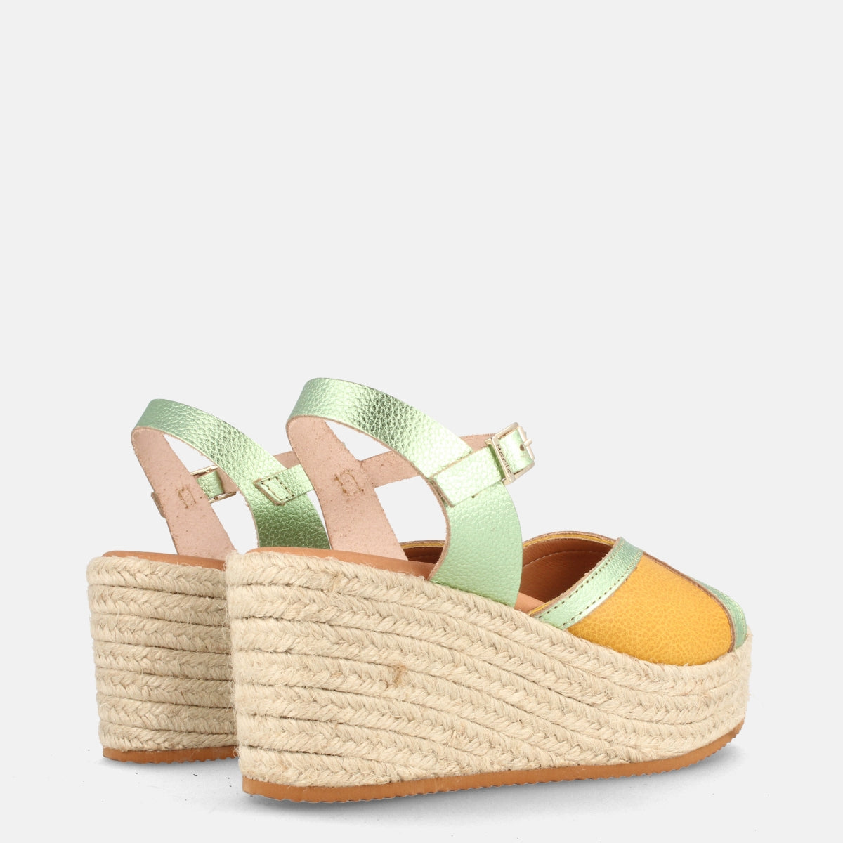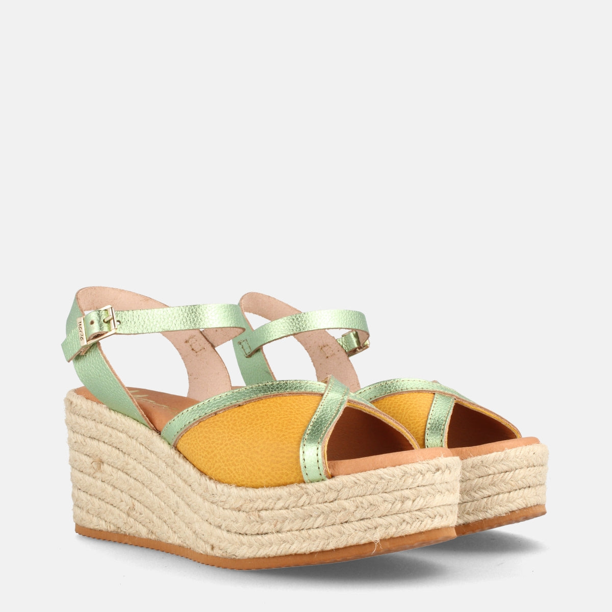 SANDALIA PARA MUJER DE PIEL CON CUÑA ALTA BOGOTÁ GIRASOL Y VERDE