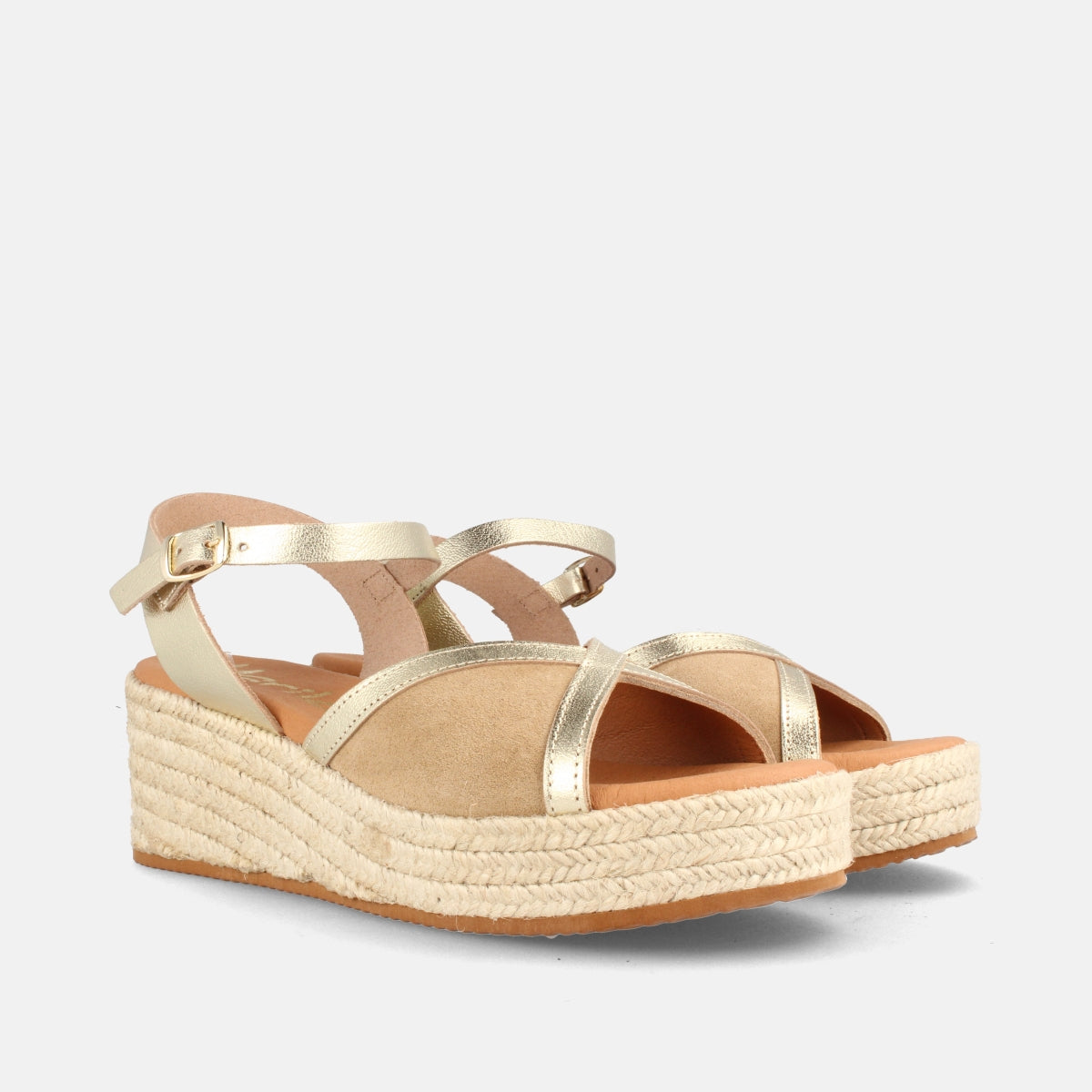 SANDALIA PARA MUJER DE PIEL CON CUÑA ALTA COLUMBIA ARENA Y PLATINO