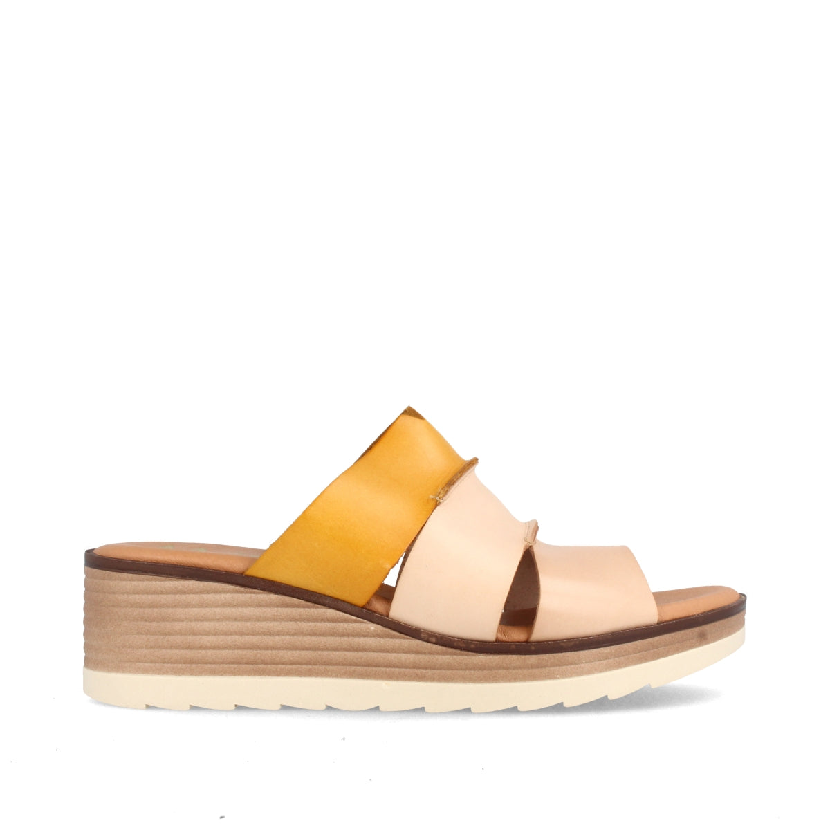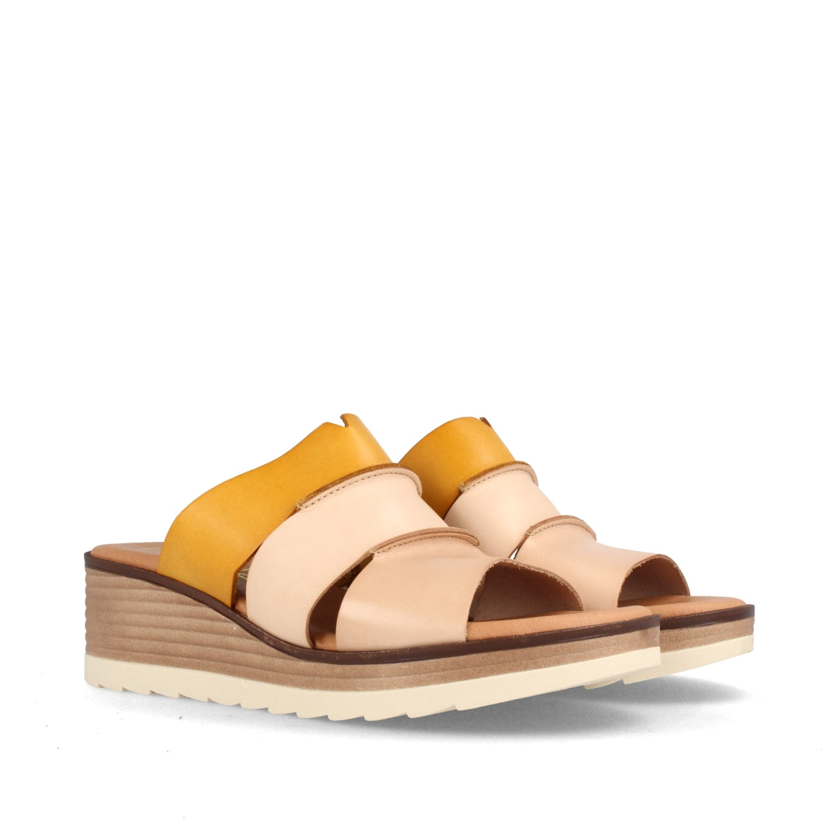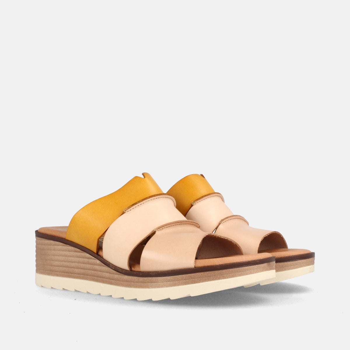 SANDALIA PARA MUJER DE PIEL CON CUÑA MEDIA TERRE COMBI DUNE