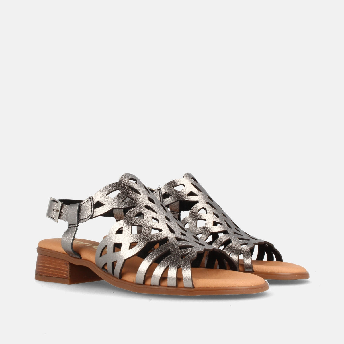 SANDALIA PARA MUJER DE PIEL CON TACÓN BAJO EVEREST ACERO – Marila Shoes