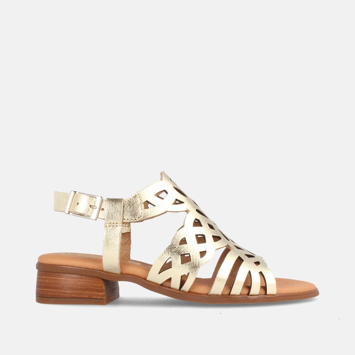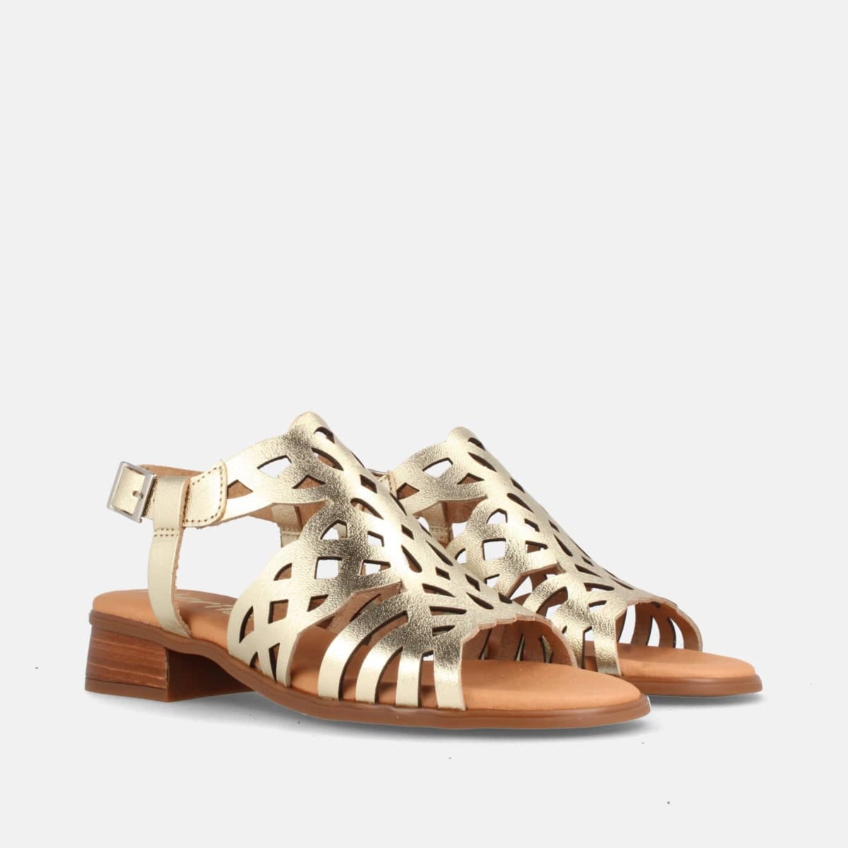SANDALIA PARA MUJER DE PIEL CON TACÓN BAJO EVEREST PLATINO