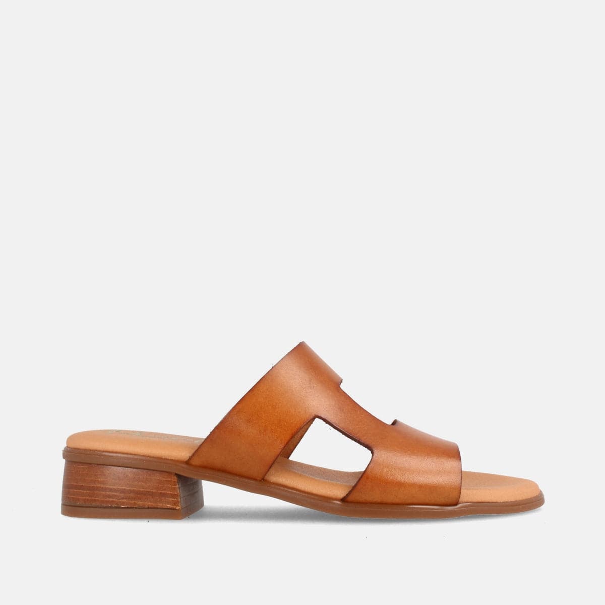 SANDALIA PARA MUJER DE PIEL CON TACÓN BAJO FARGO AVELLANA