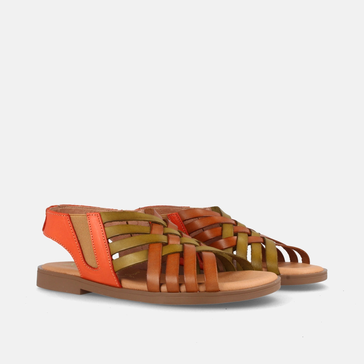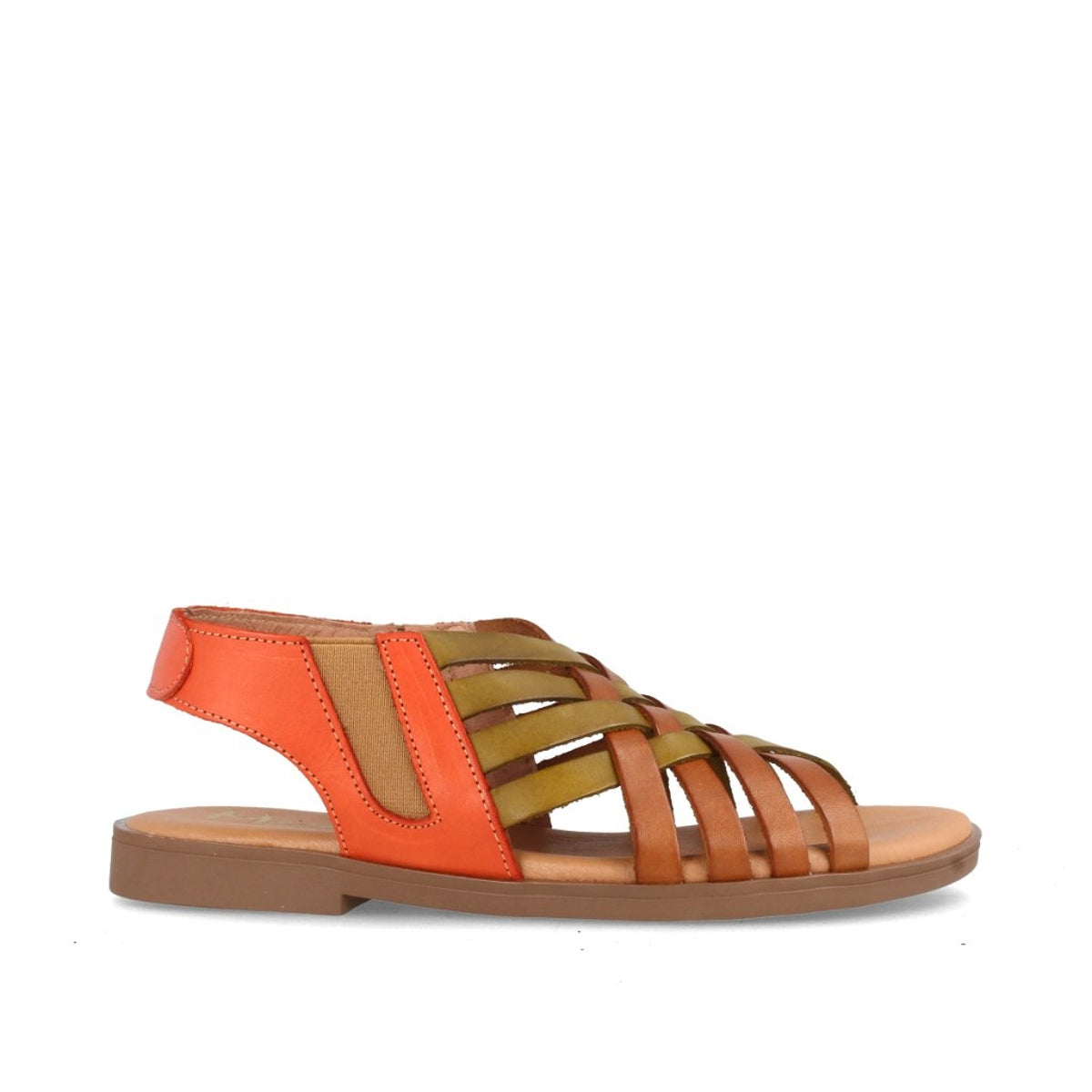 SANDALIA PARA MUJER PLANA EN PIEL AMAPOLA COMBI AVELLANA