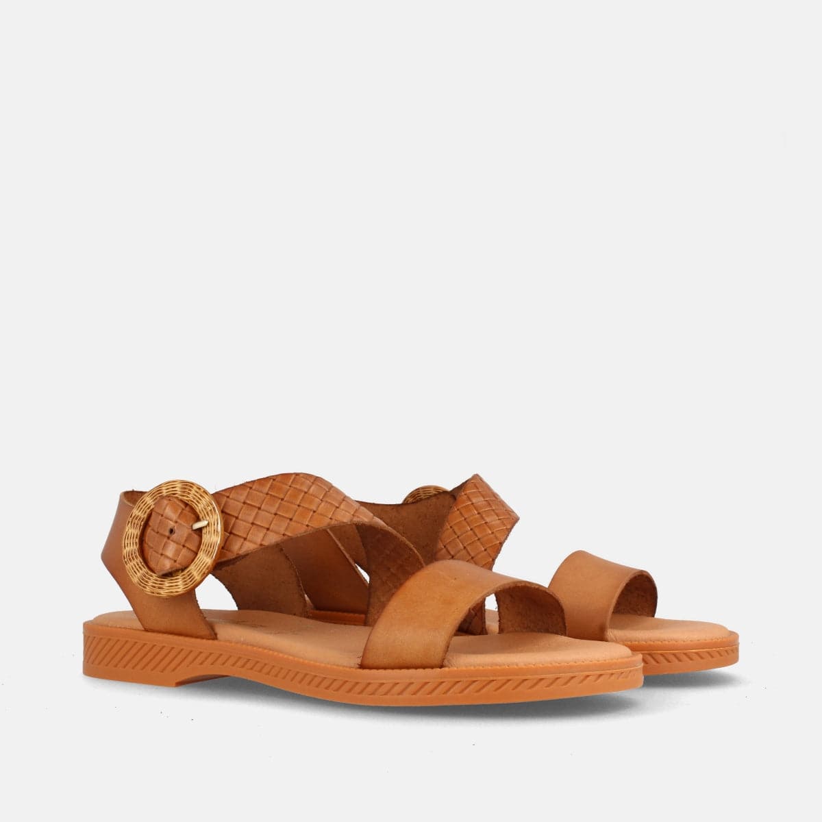 SANDALIA PLANA DE PIEL PARA MUJER AMSTER AVELLANA