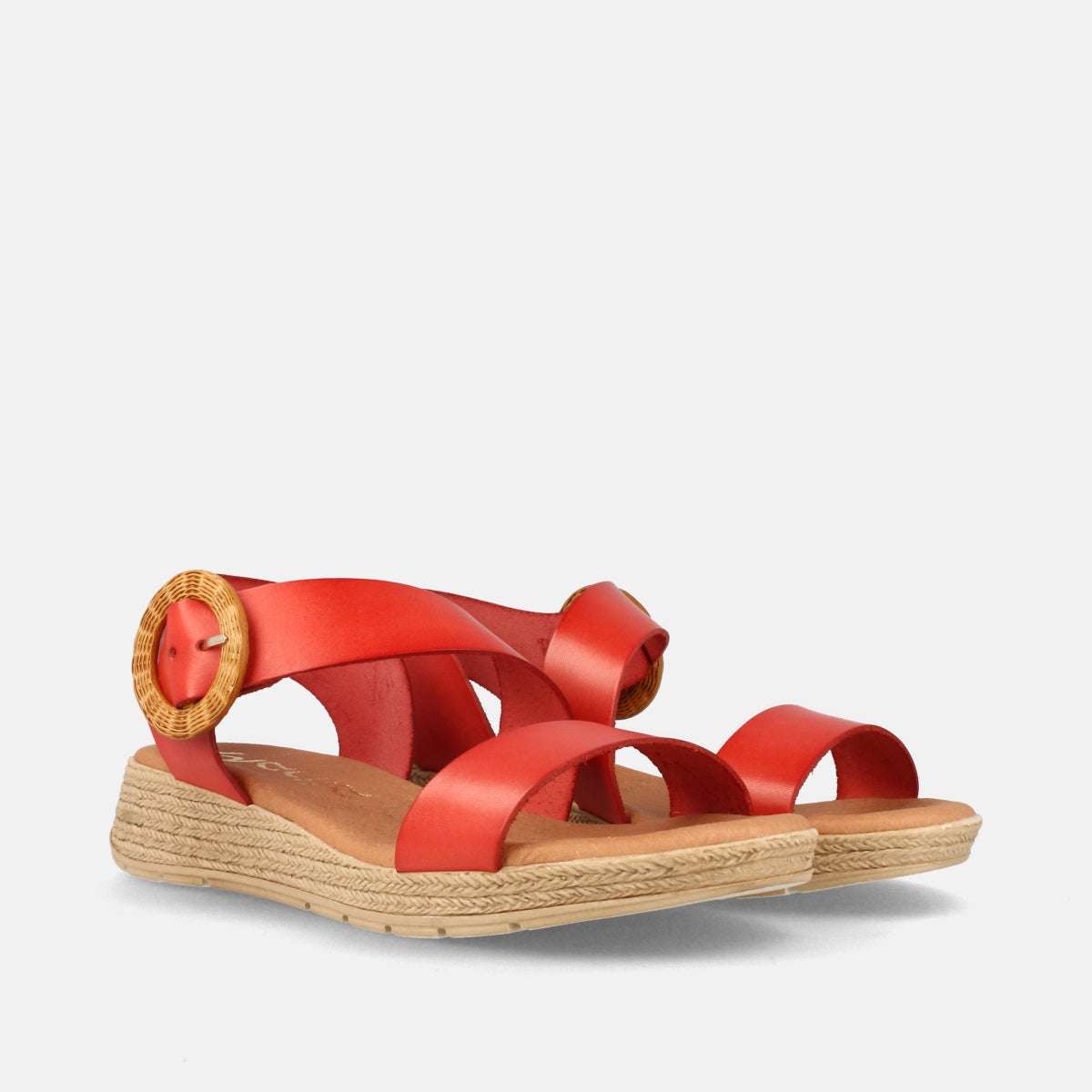 SANDALIA PLANA DE PIEL PARA MUJER CAMBERRA CARMÍN