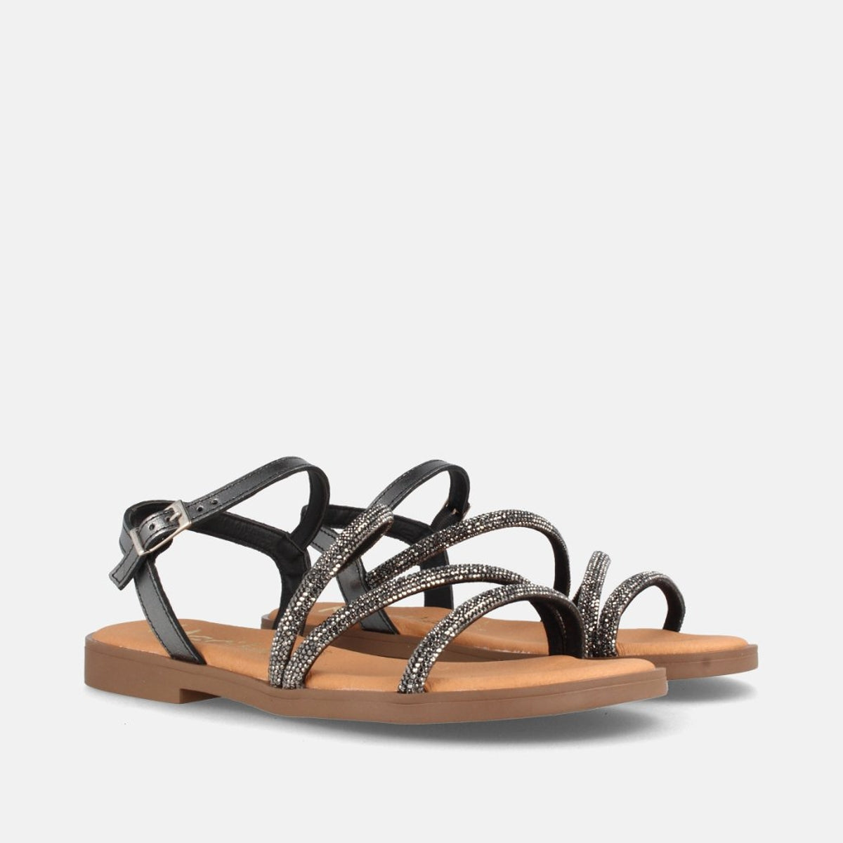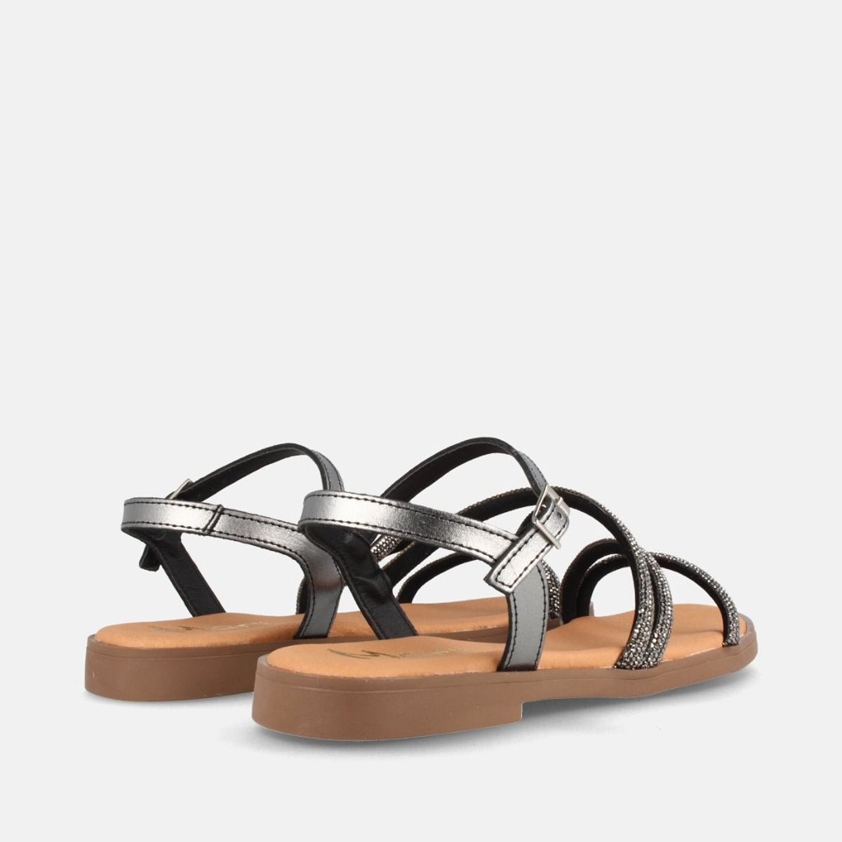 SANDALIA PLANA PARA MUJER BRADES BRILLANTE ACERO