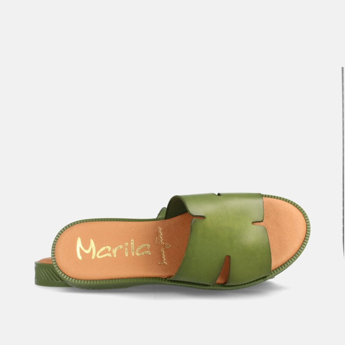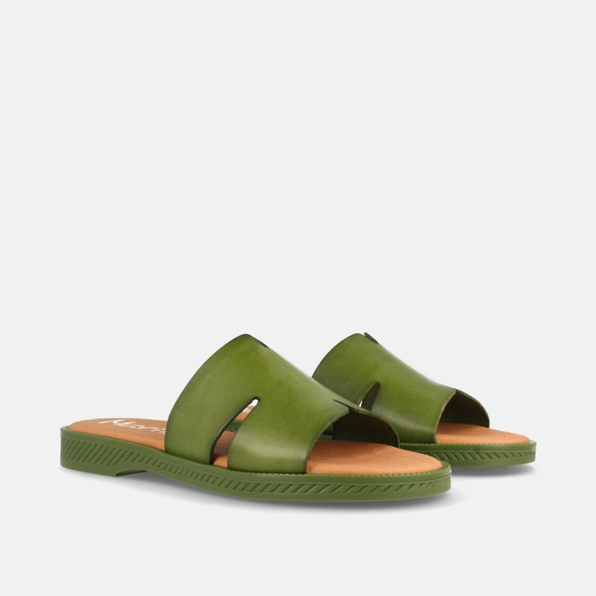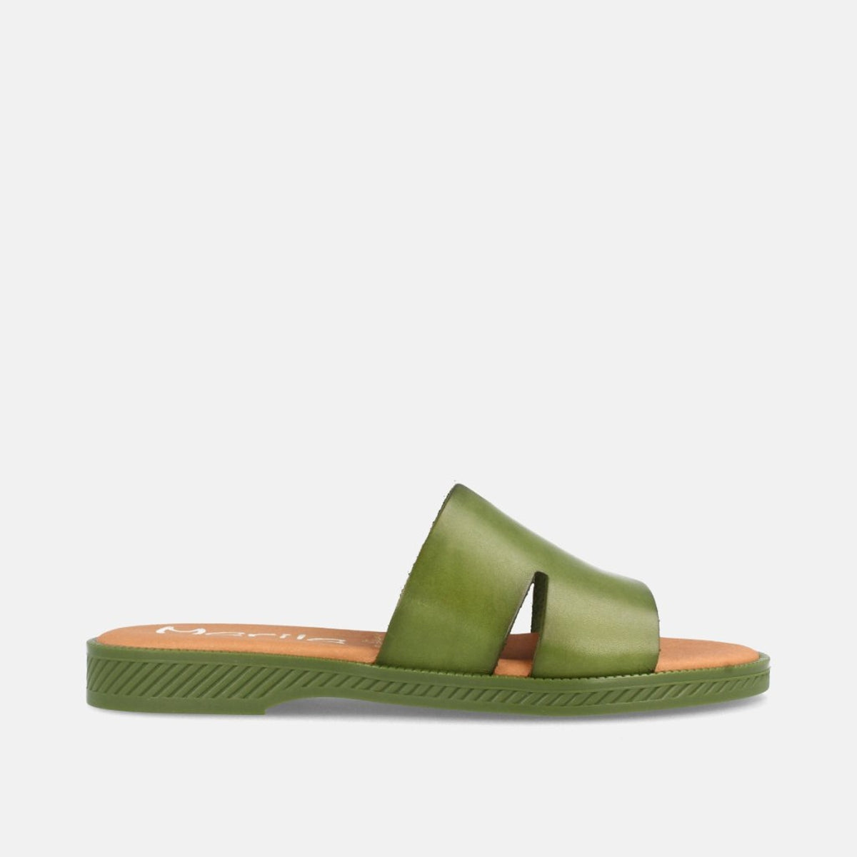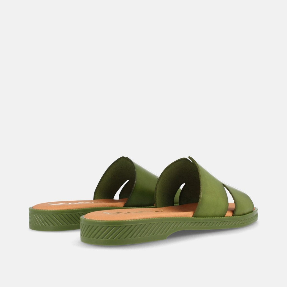 SANDALIA PLANA PARA MUJER TIPO ZUECO EN PIEL ANKARA PISTACHO