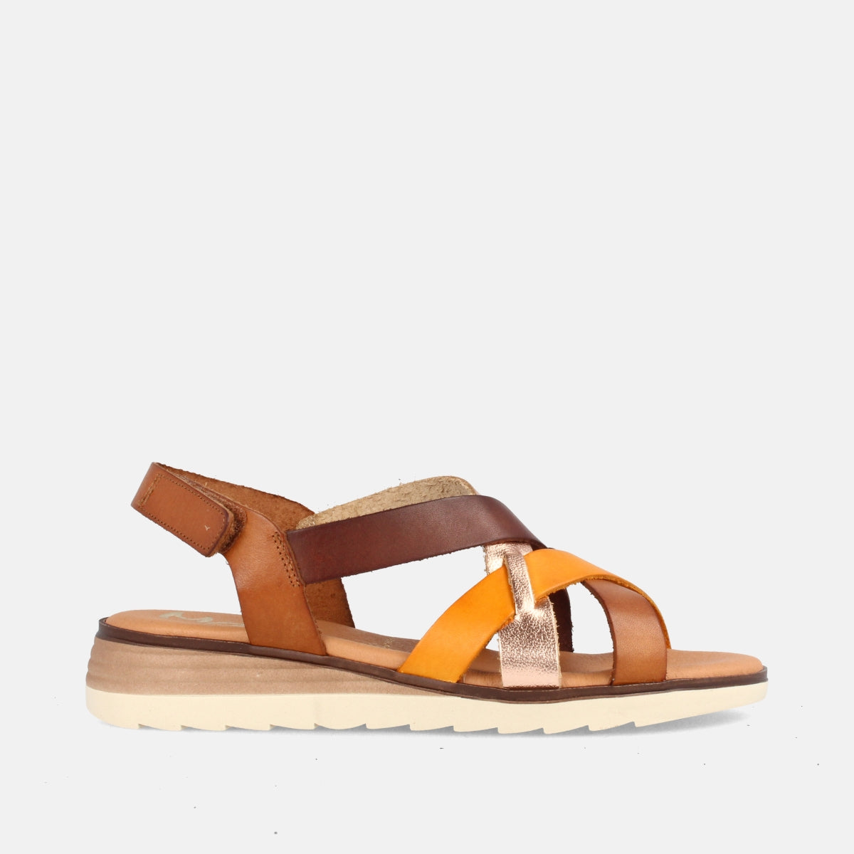SANDALIAS PARA MUJER CON CUÑA BAJA EN PIEL BETIANA COMBI AVELLANA