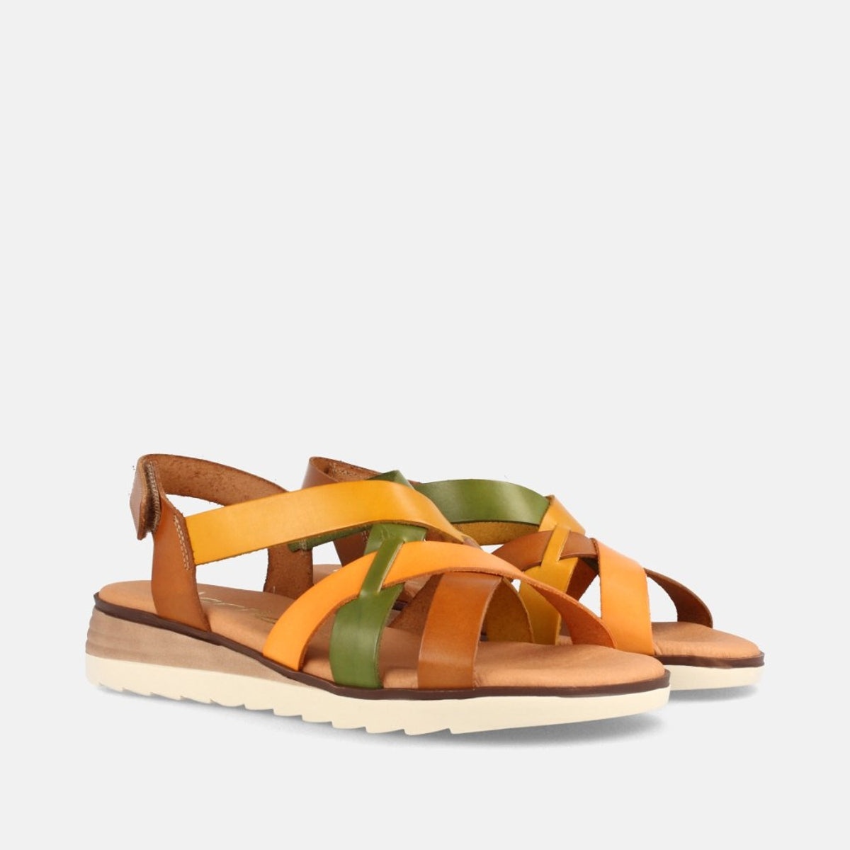 SANDALIAS PARA MUJER CON CUÑA BAJA EN PIEL BETIANA COMBI AVELLANA