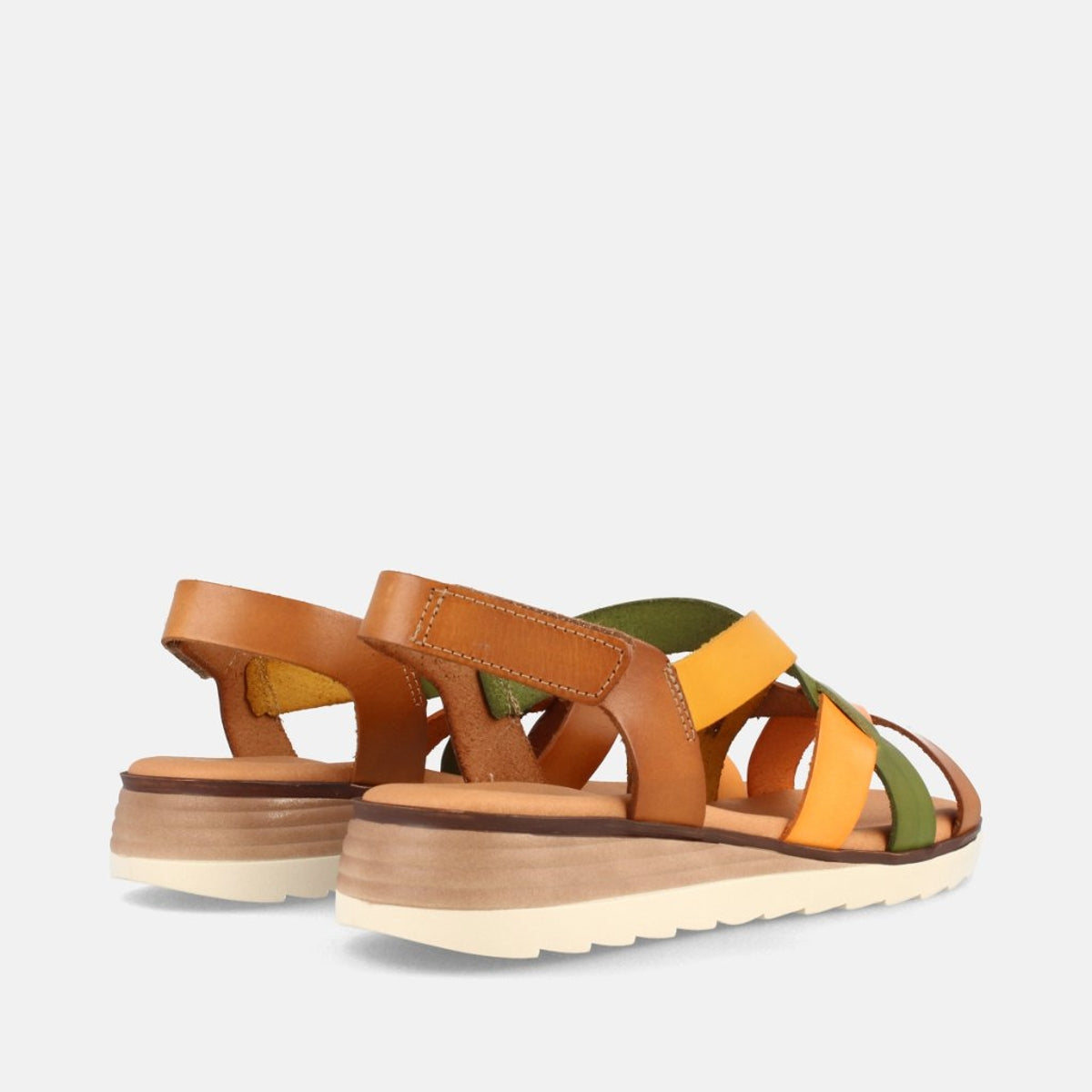 Ideales sandalias para mujer fabricadas en piel vaquetilla color combi avellana.