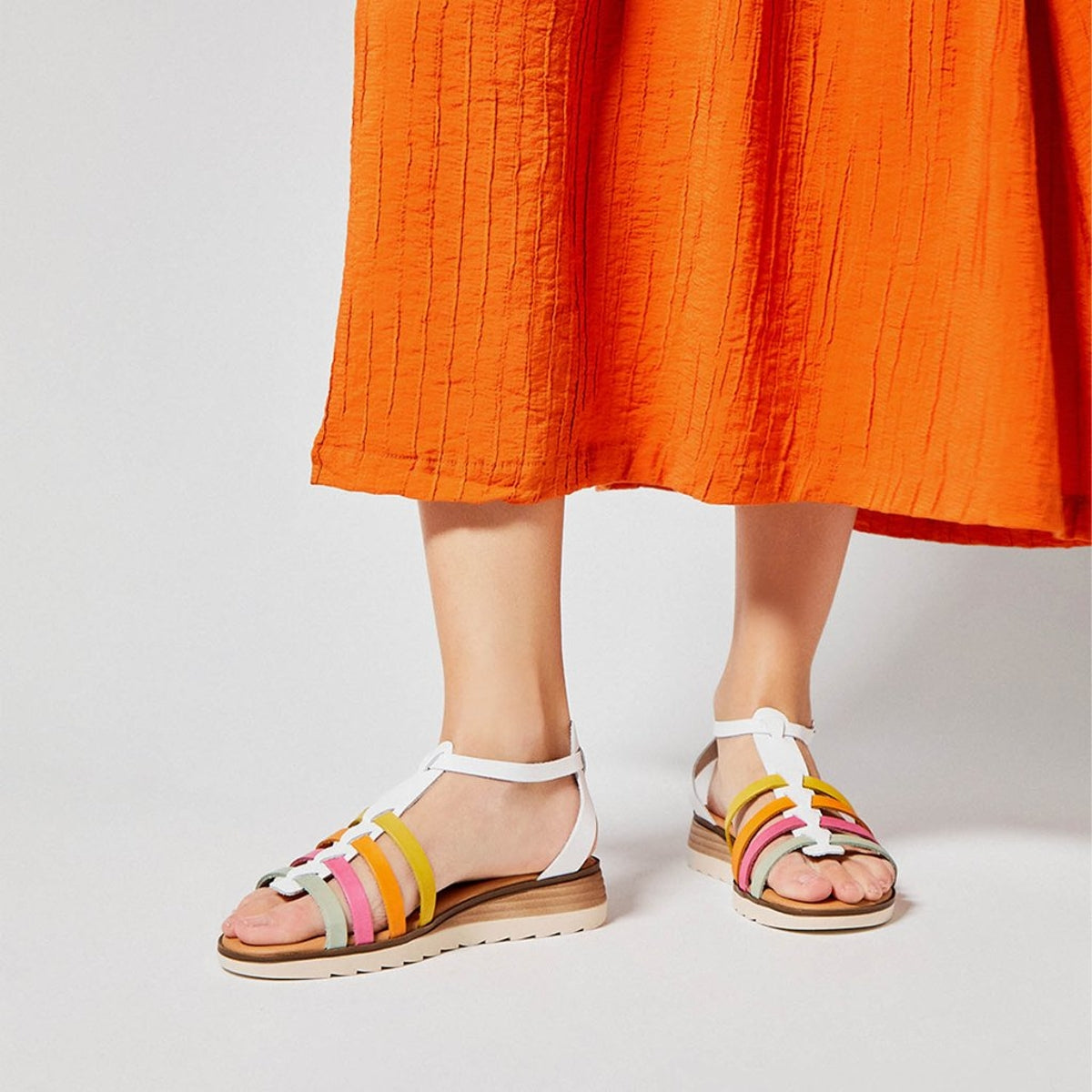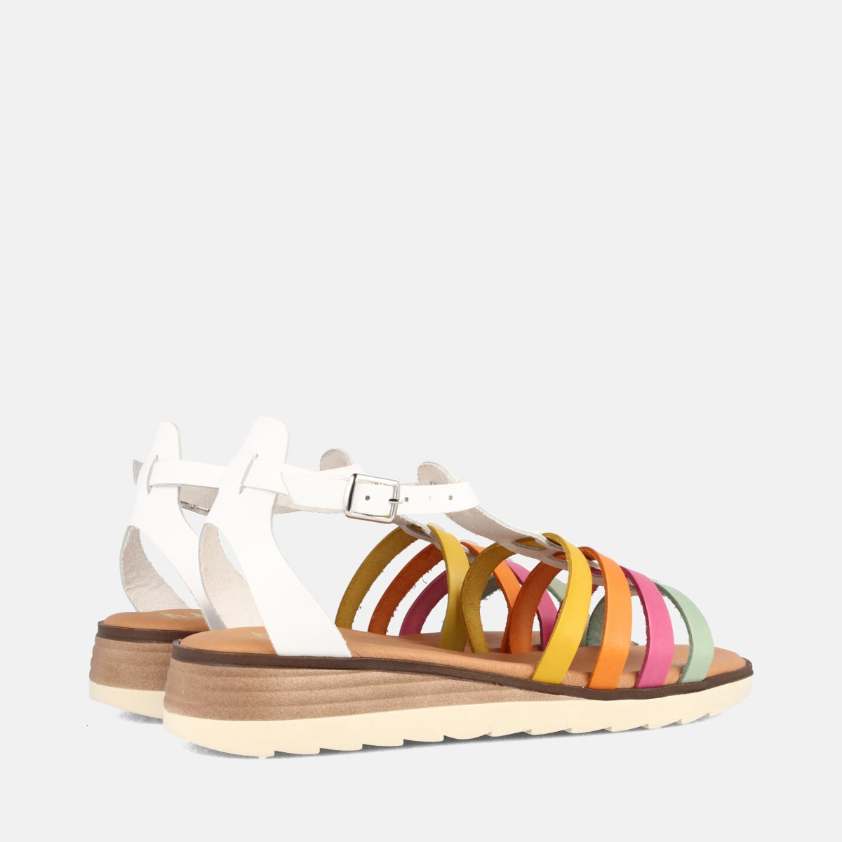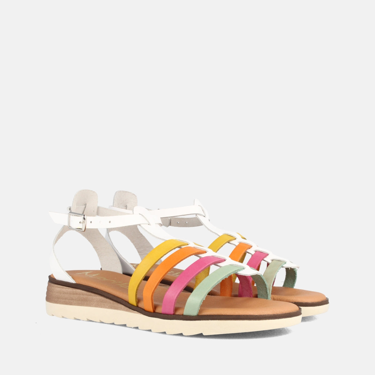 SANDALIAS PARA MUJER CON CUÑA BAJA ESTILO CANGREJERA EN PIEL ANABELLA MULTIBLANCO