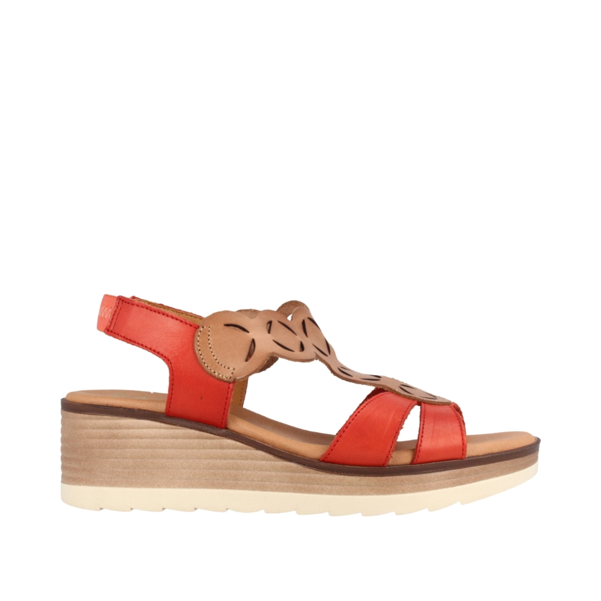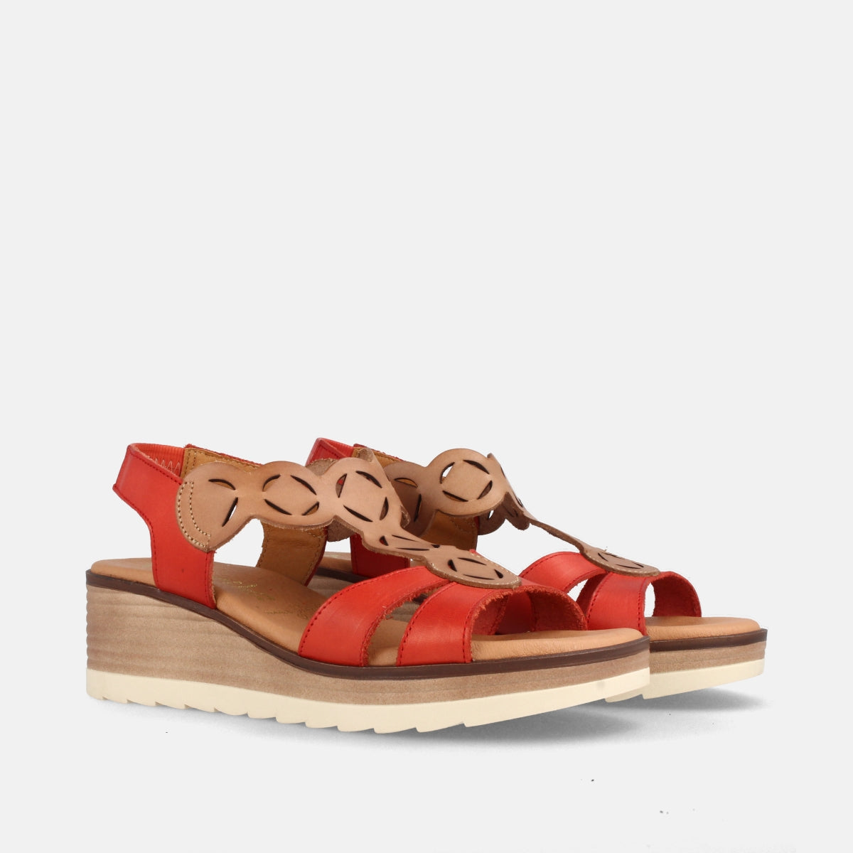 SANDALIAS PARA MUJER CON CUÑA MEDIA EN PIEL ELOISA CARMÍN