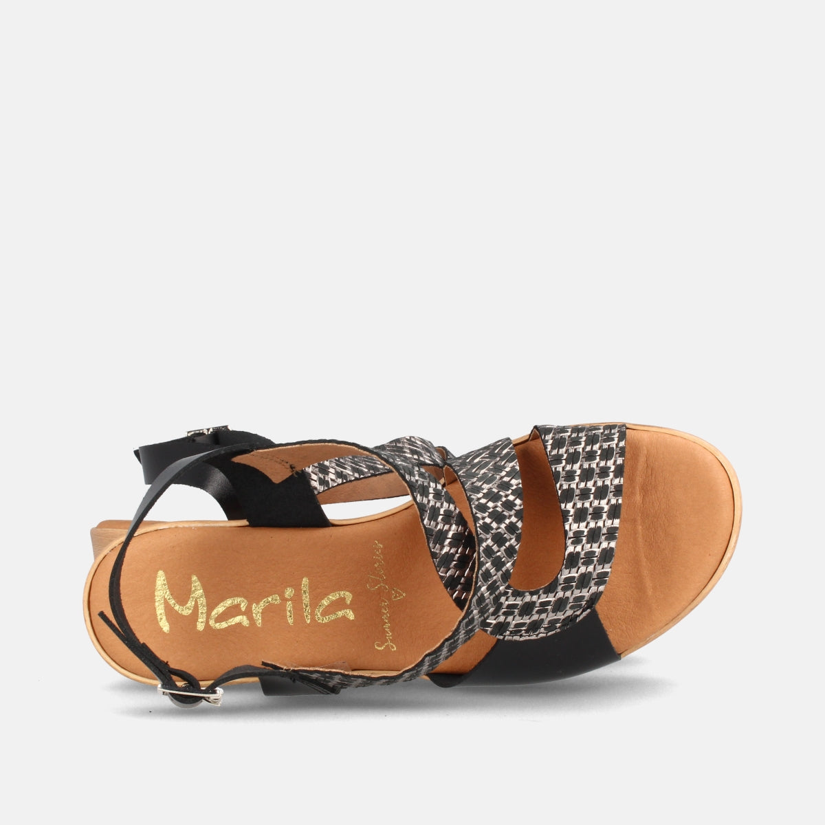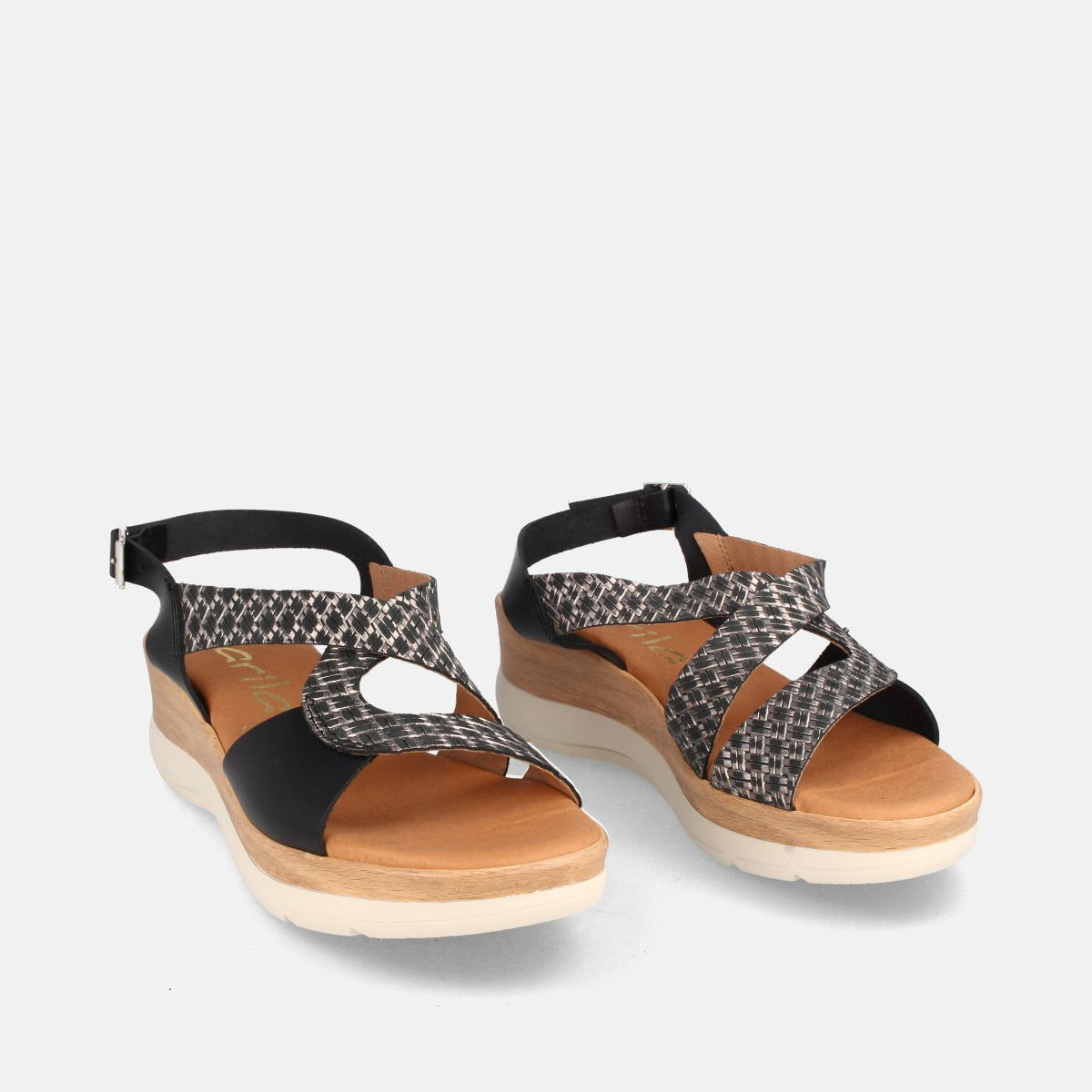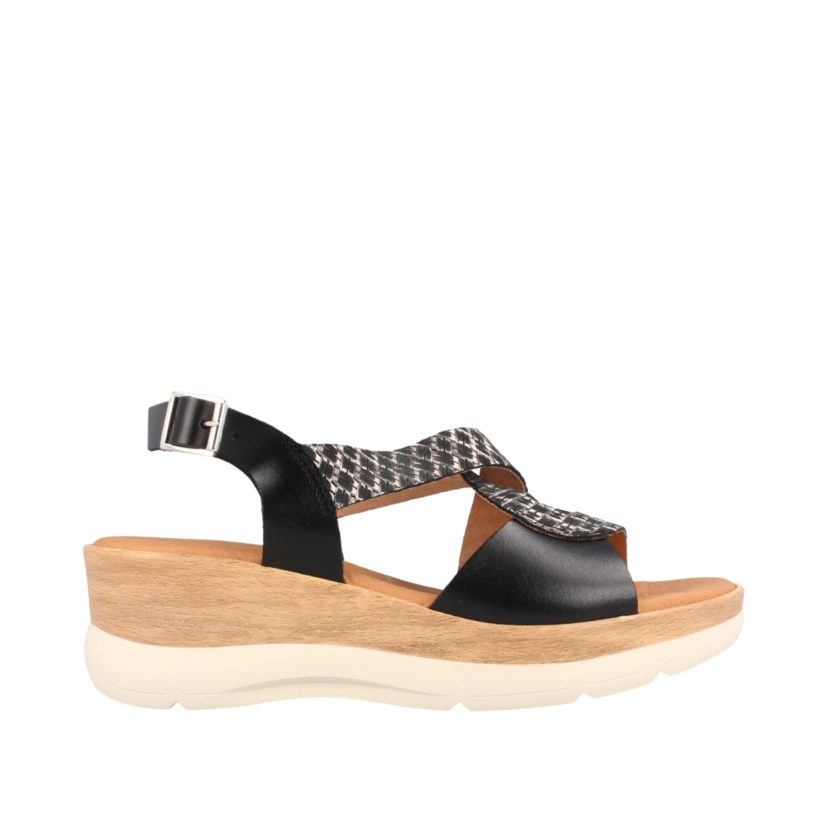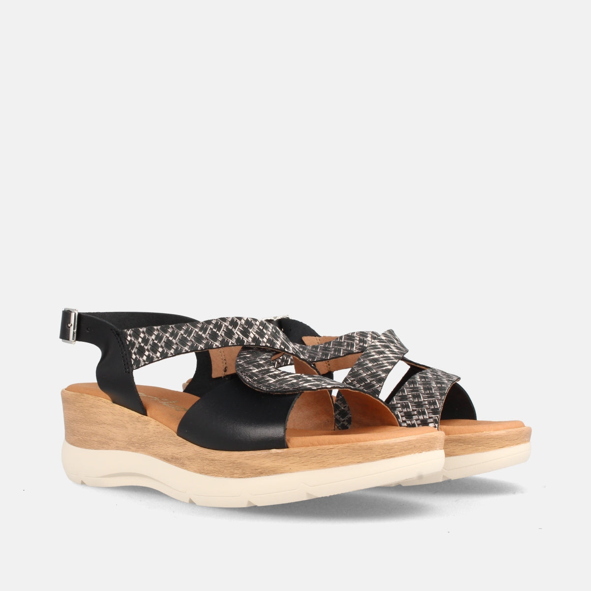 SANDALIAS PARA MUJER CON CUÑA MEDIA EN PIEL GRABADA GRISELDA NEGRO