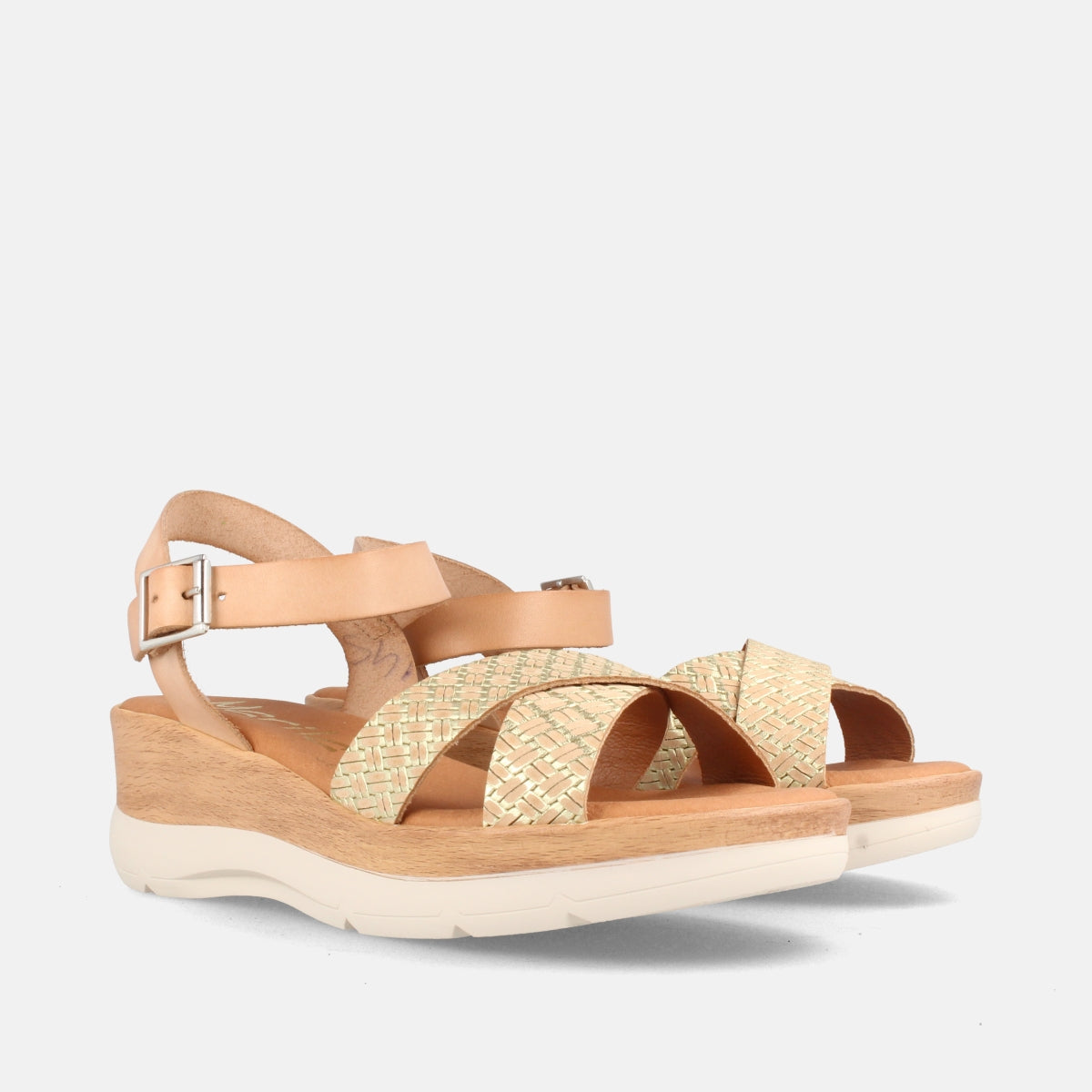 SANDALIAS PARA MUJER CON CUÑA MEDIA EN PIEL JANET CORFU ARENA