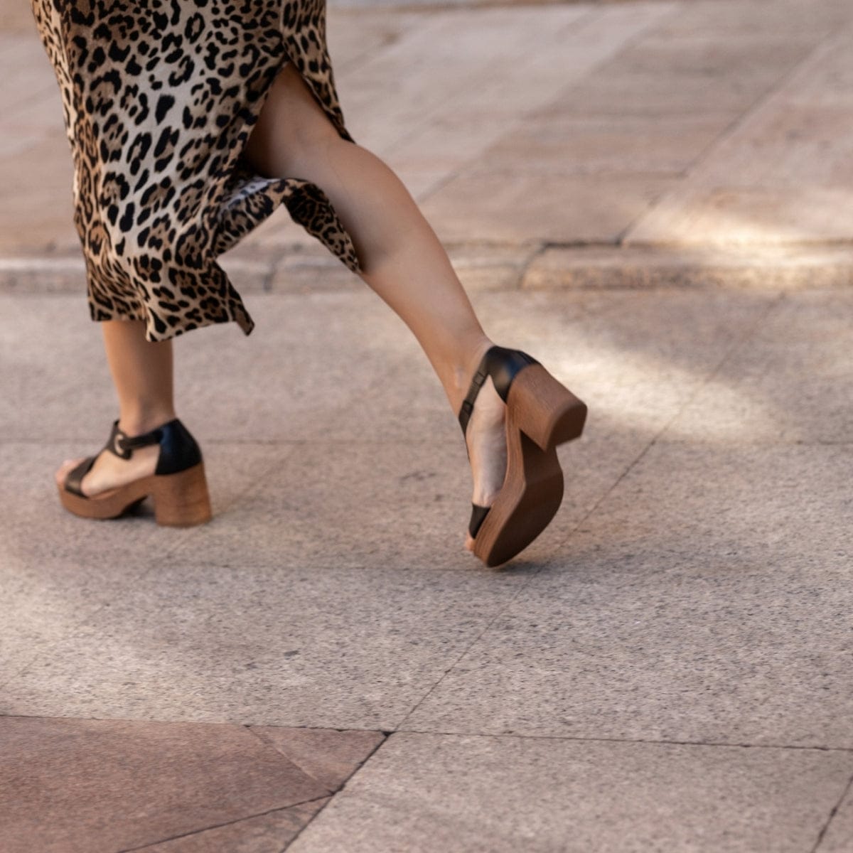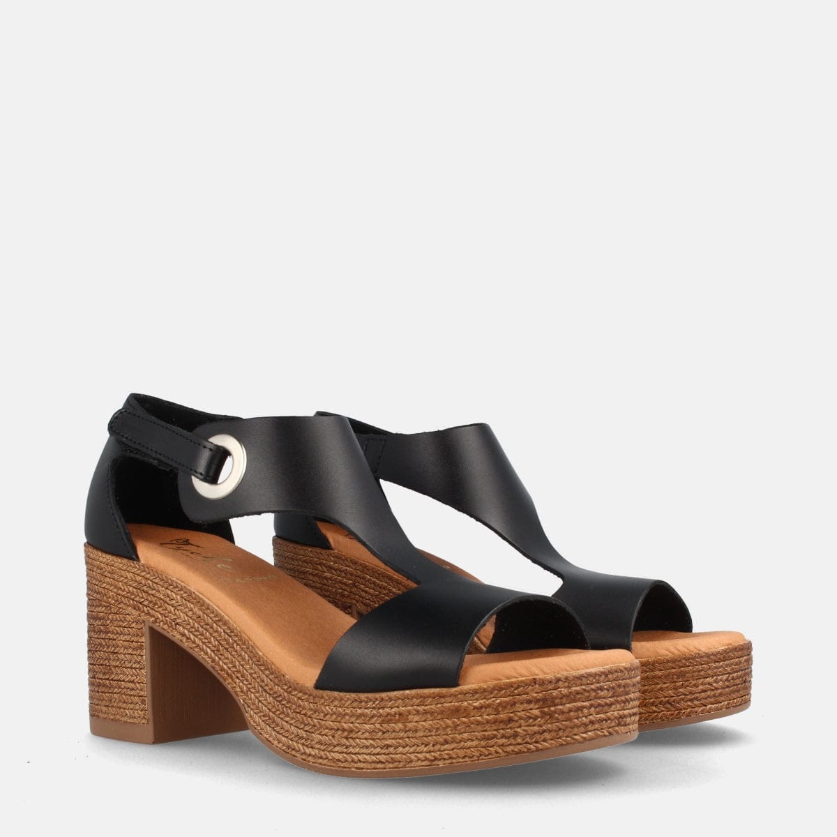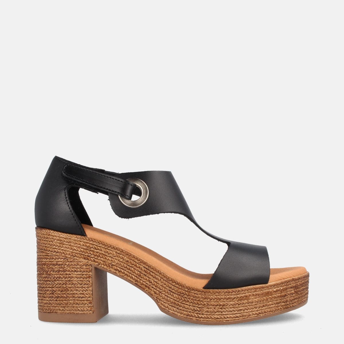 SANDALIAS PARA MUJER CON TACÓN Y PLATAFORMA EN PIEL BERLÍN NEGRO