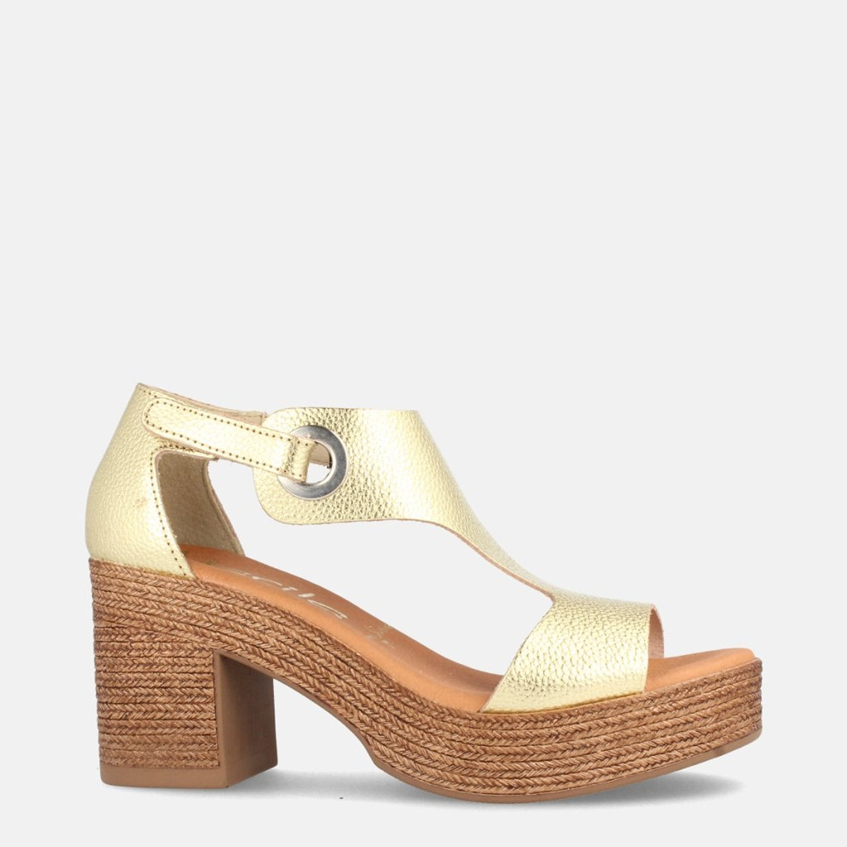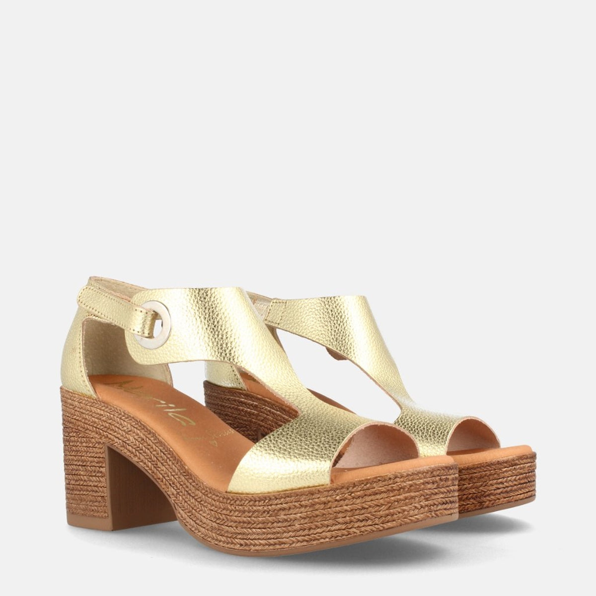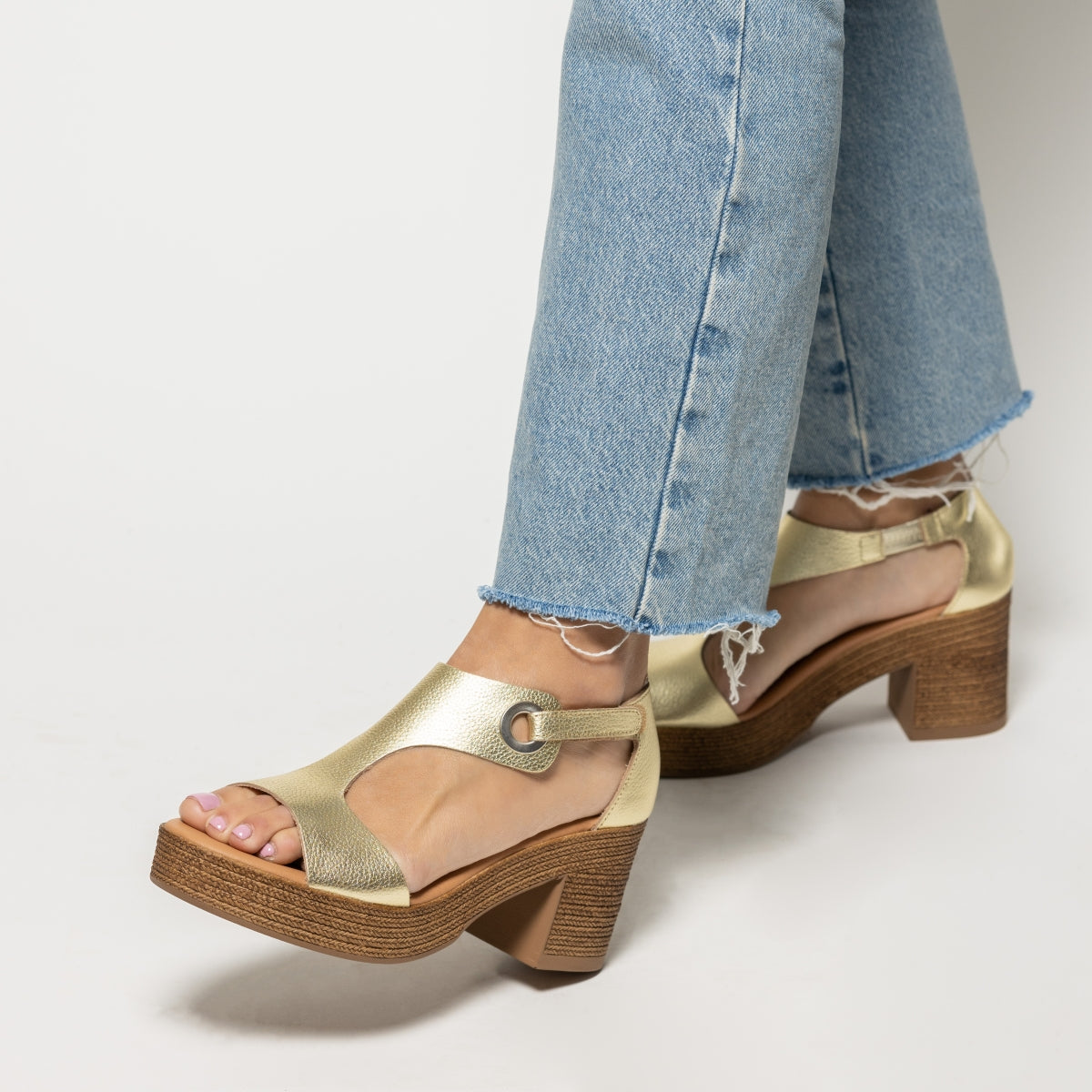 SANDALIAS PARA MUJER CON TACÓN Y PLATAFORMA EN PIEL BERLÍN PLATINO