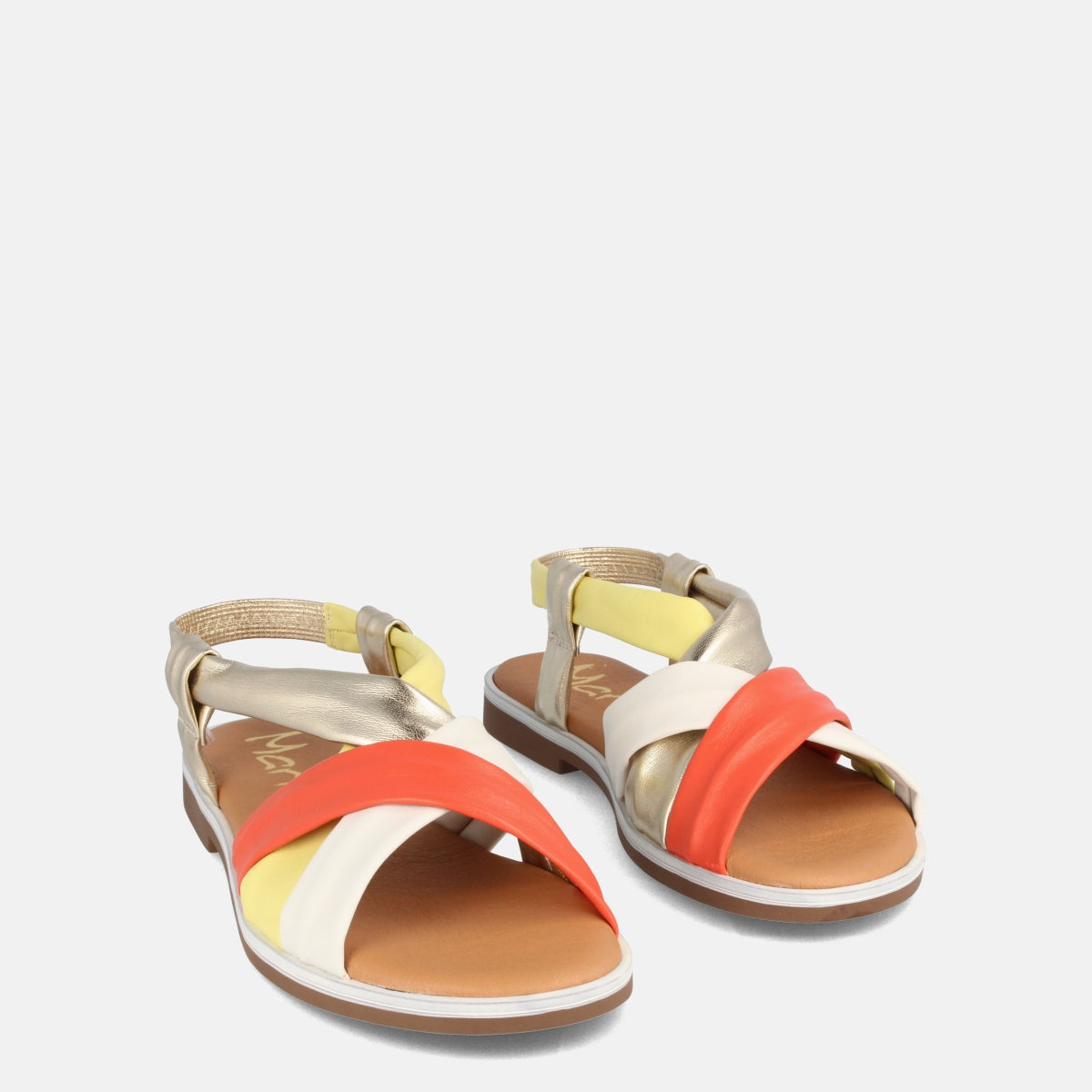 SANDALIAS PARA MUJER PLANAS EN PIEL CLEMENCIA MULTINARANJA – Marila Shoes