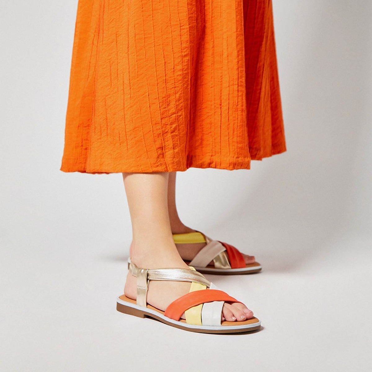 SANDALIAS PARA MUJER PLANAS EN PIEL CLEMENCIA MULTINARANJA