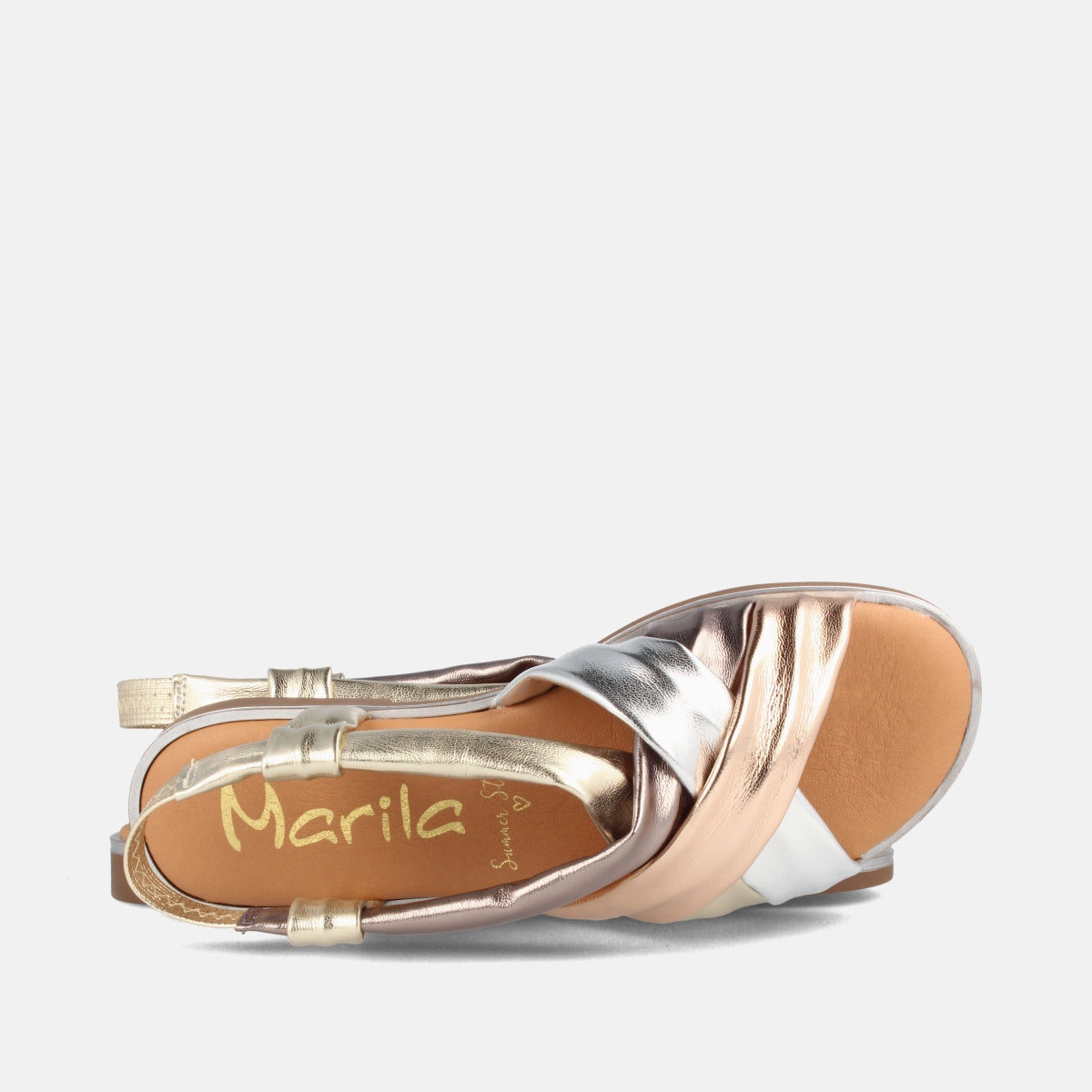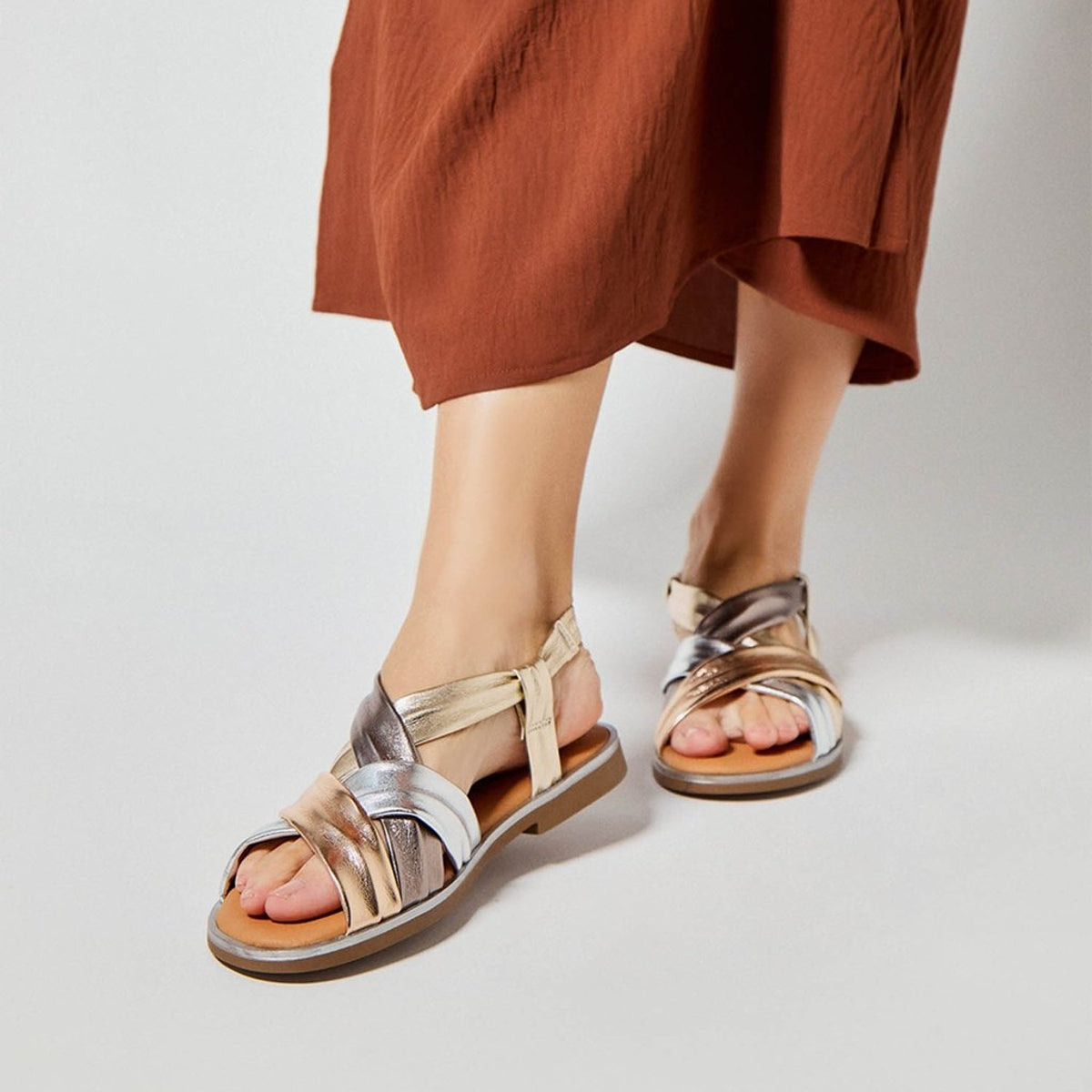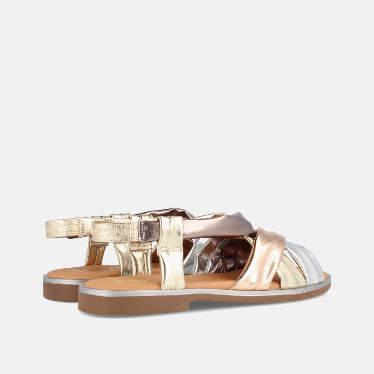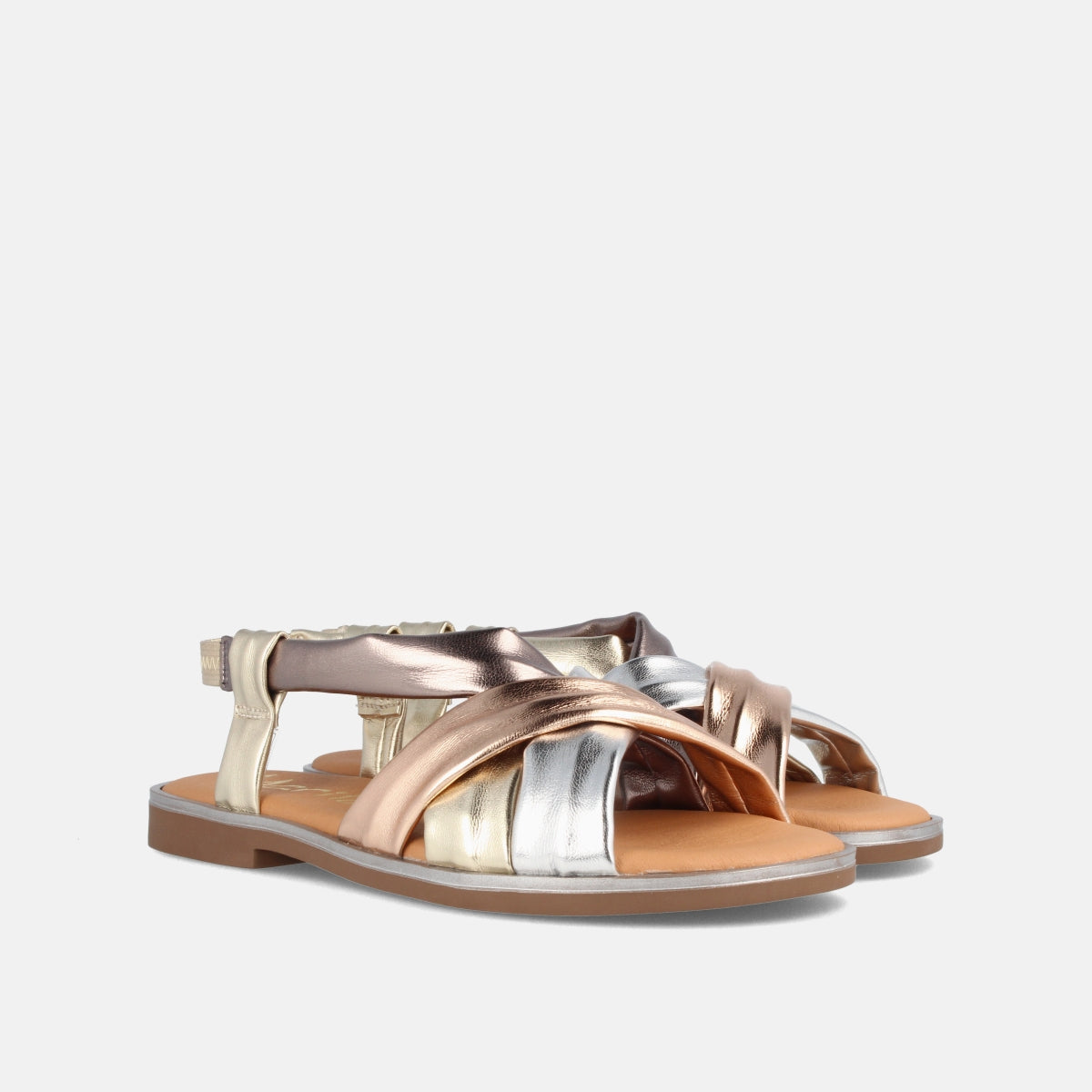SANDALIAS PARA MUJER PLANAS EN PIEL CORA MULTIMETAL