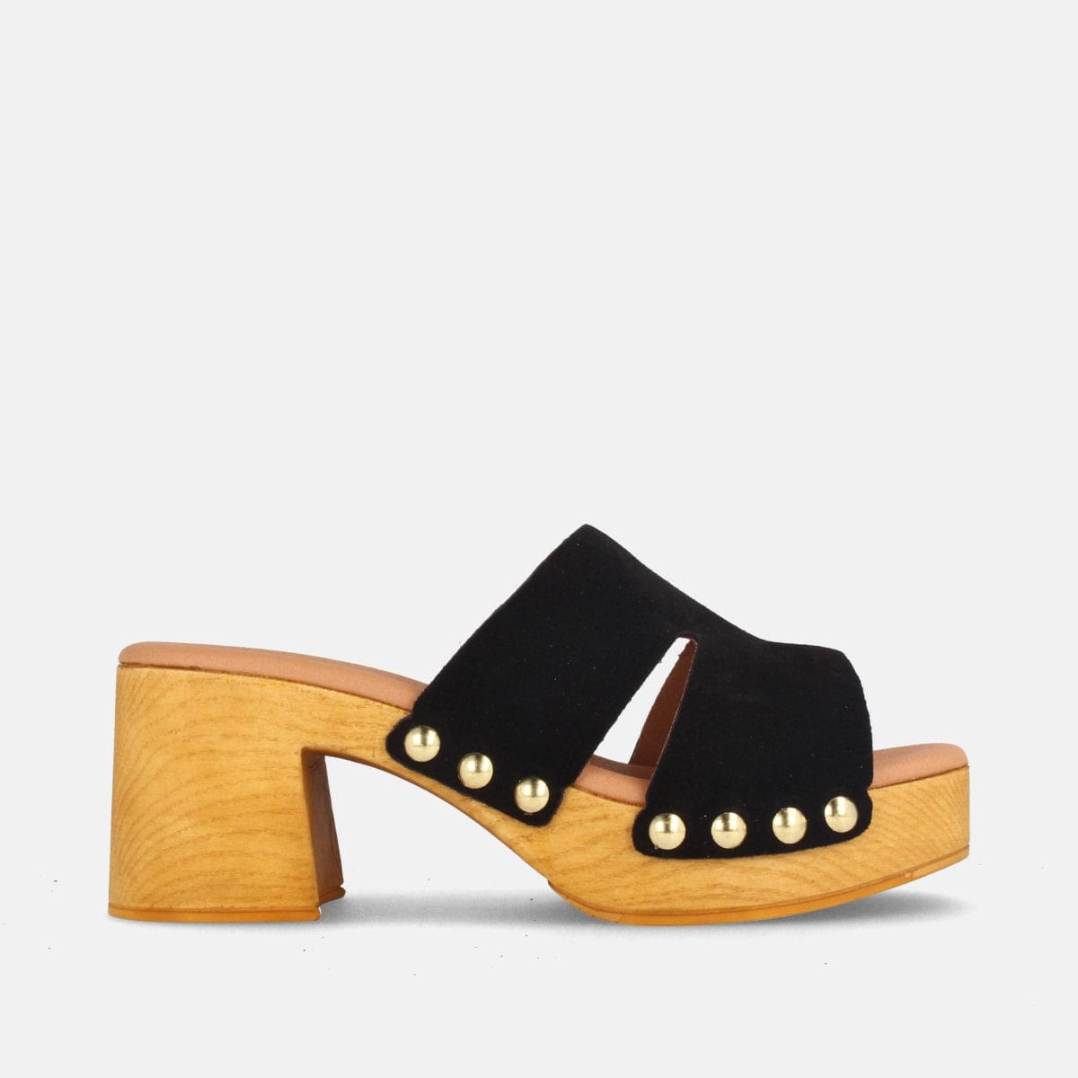 ZUECO CUERO PARA MUJER CON PLATAFORMA Y TACÓN ALTO CHICAGO NEGRO