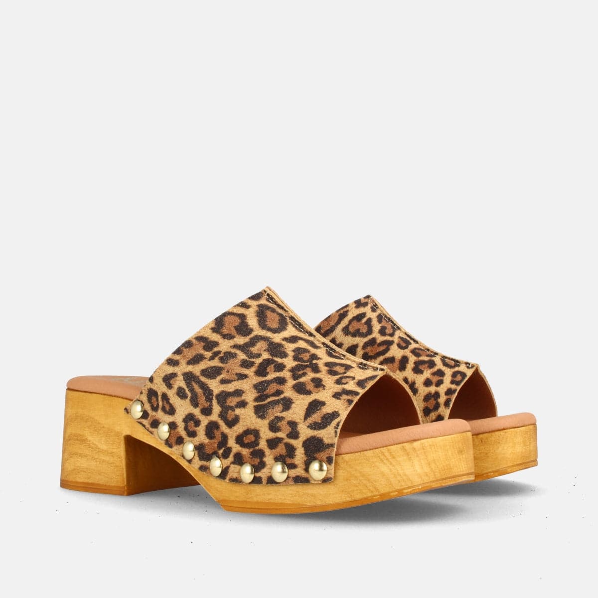 ZUECO LEOPARDO PARA MUJER CON PLATAFORMA Y TACÓN MEDIO EN PIEL