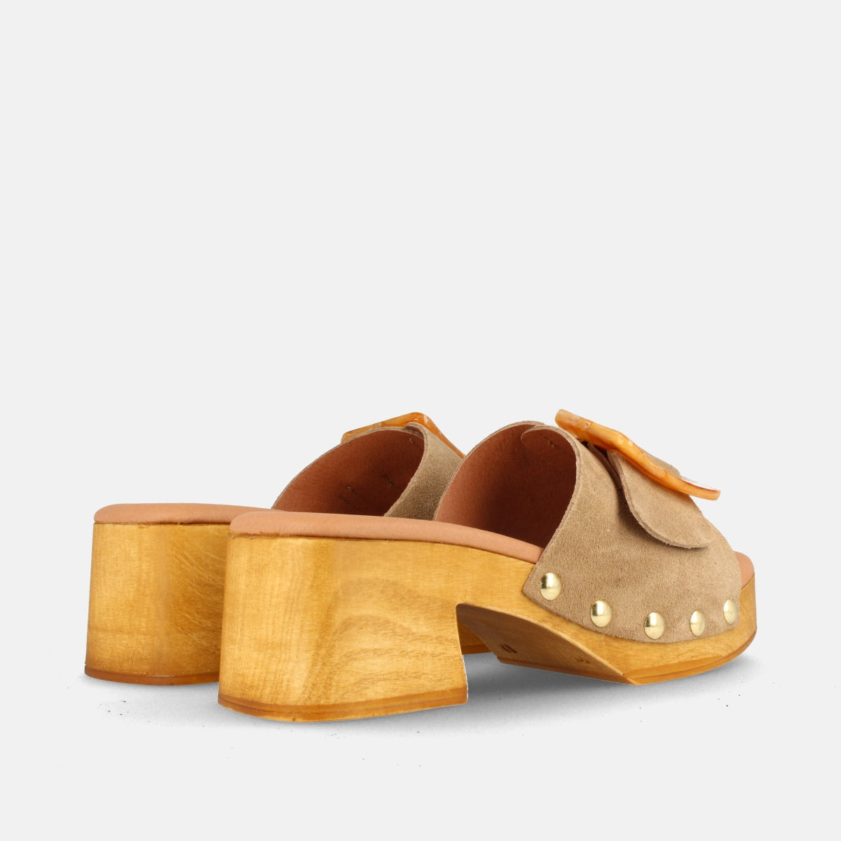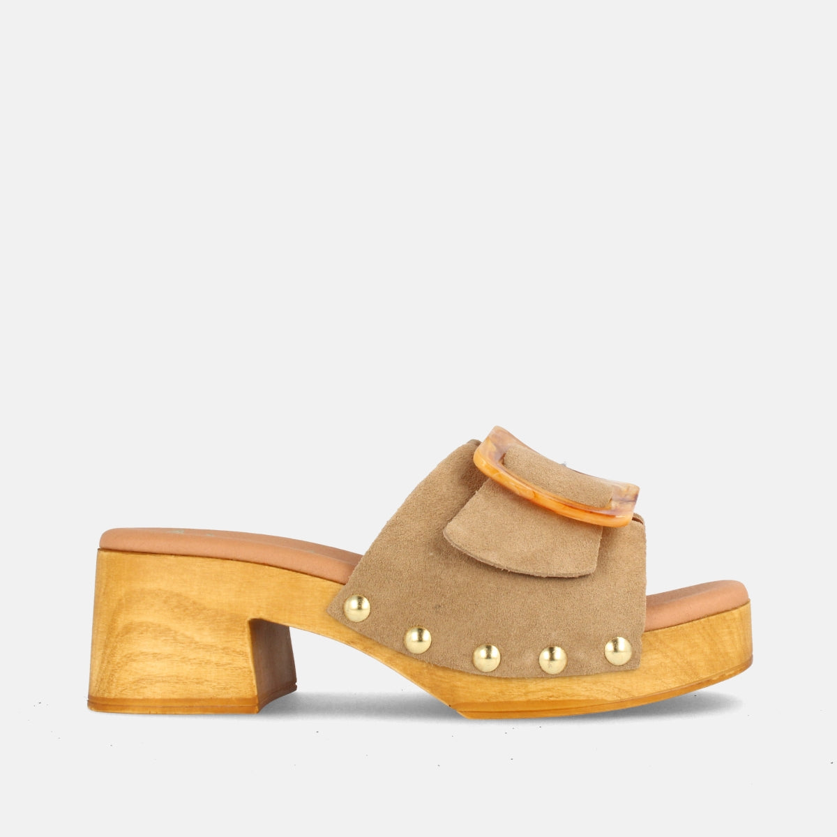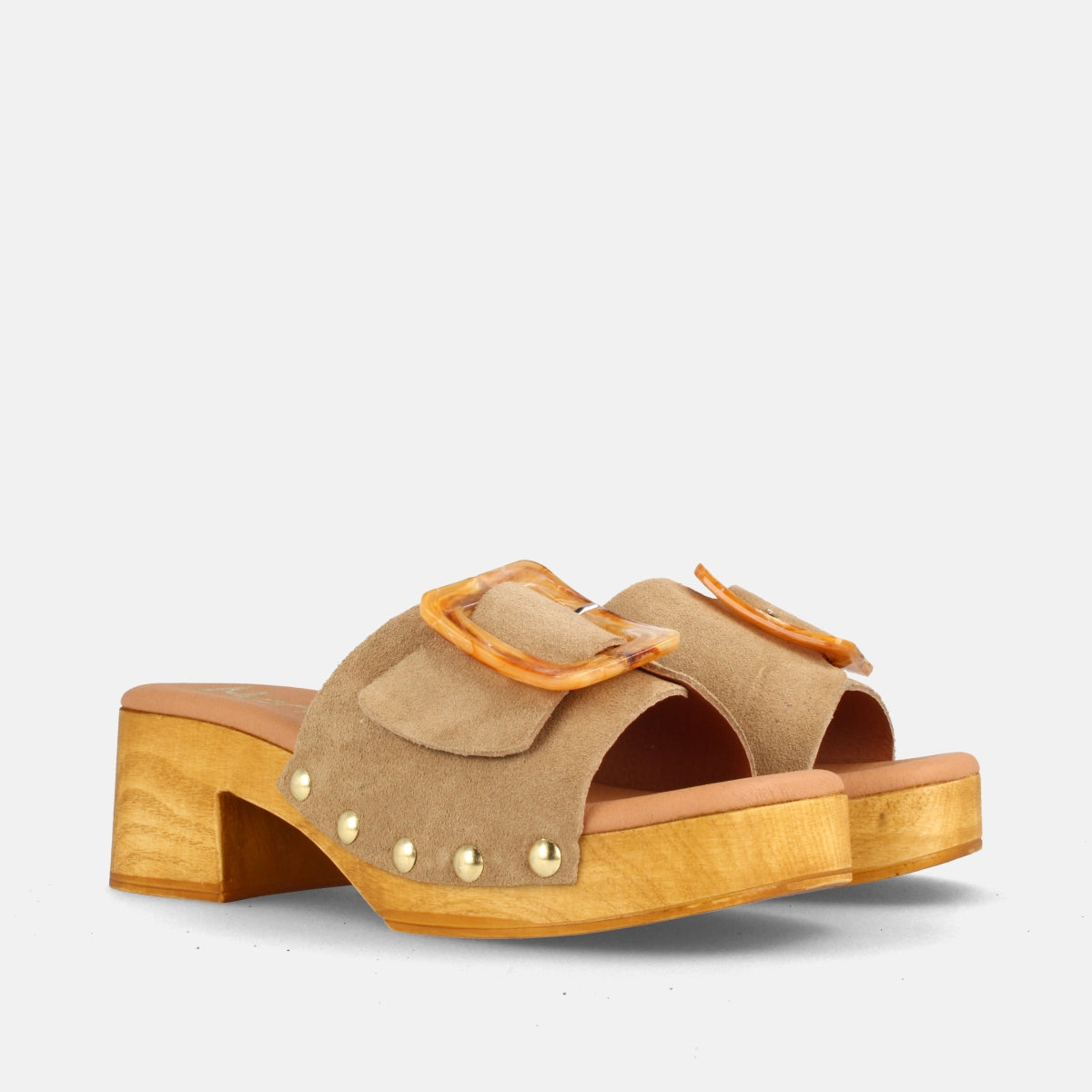 ZUECO PARA MUJER CON PLATAFORMA, HEBILLA Y TACÓN MEDIO EN SERRAJE FILADELFIA MUSHROOM