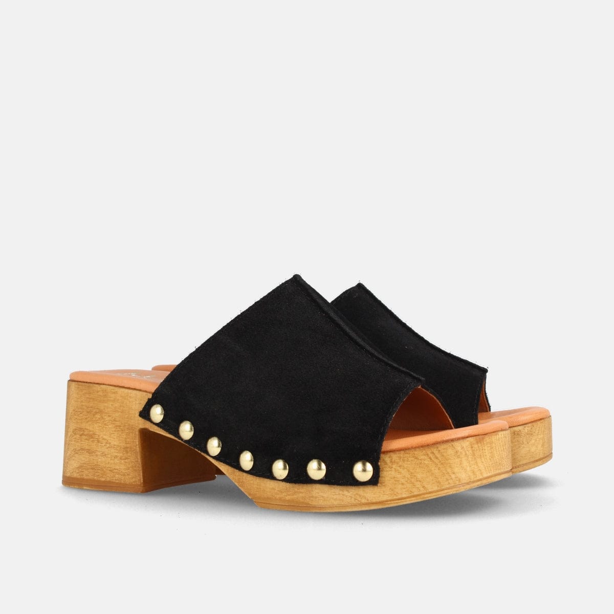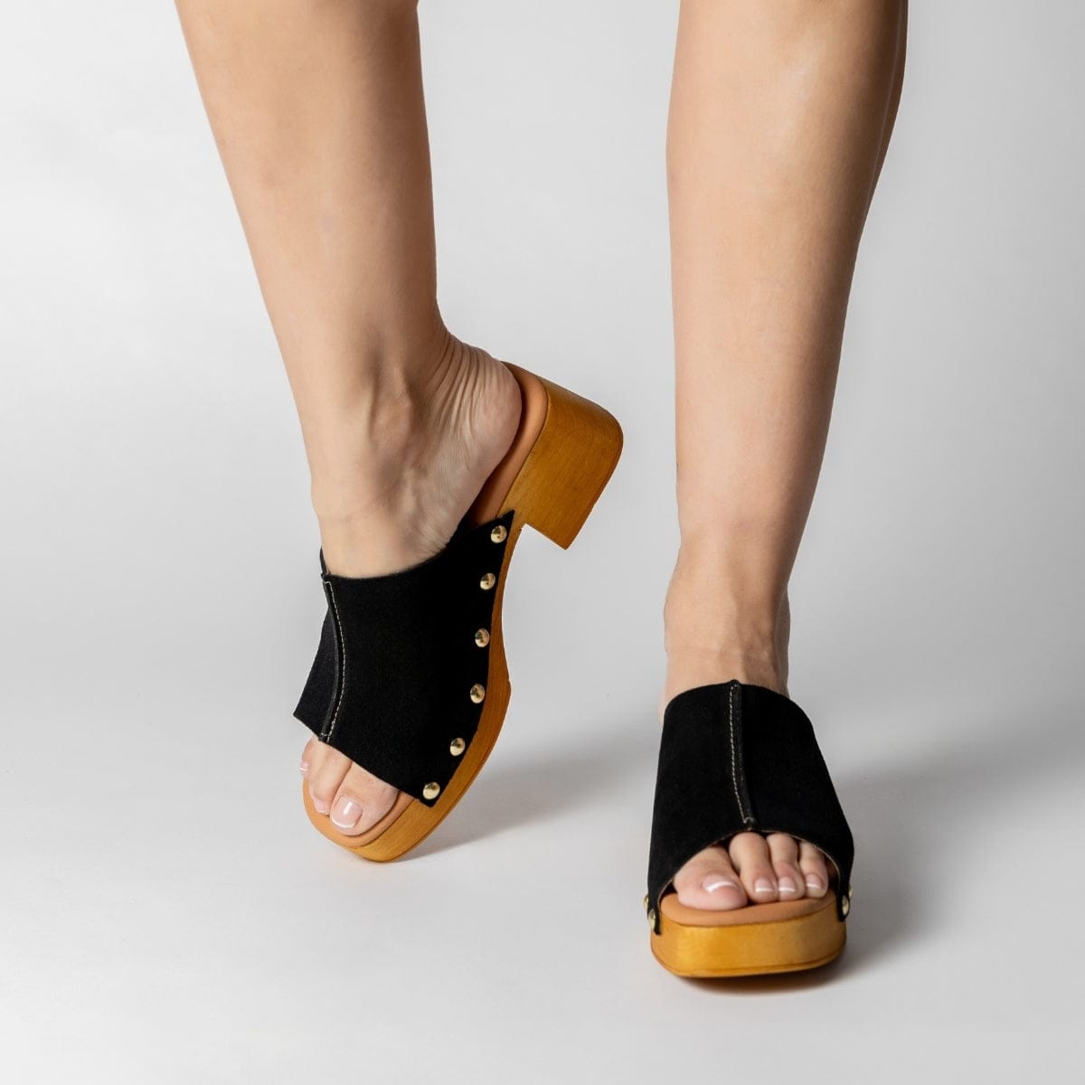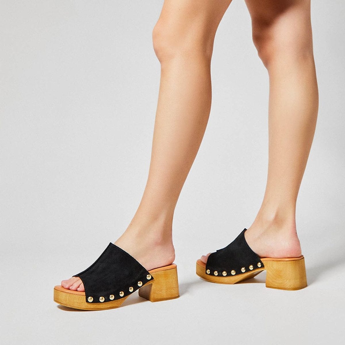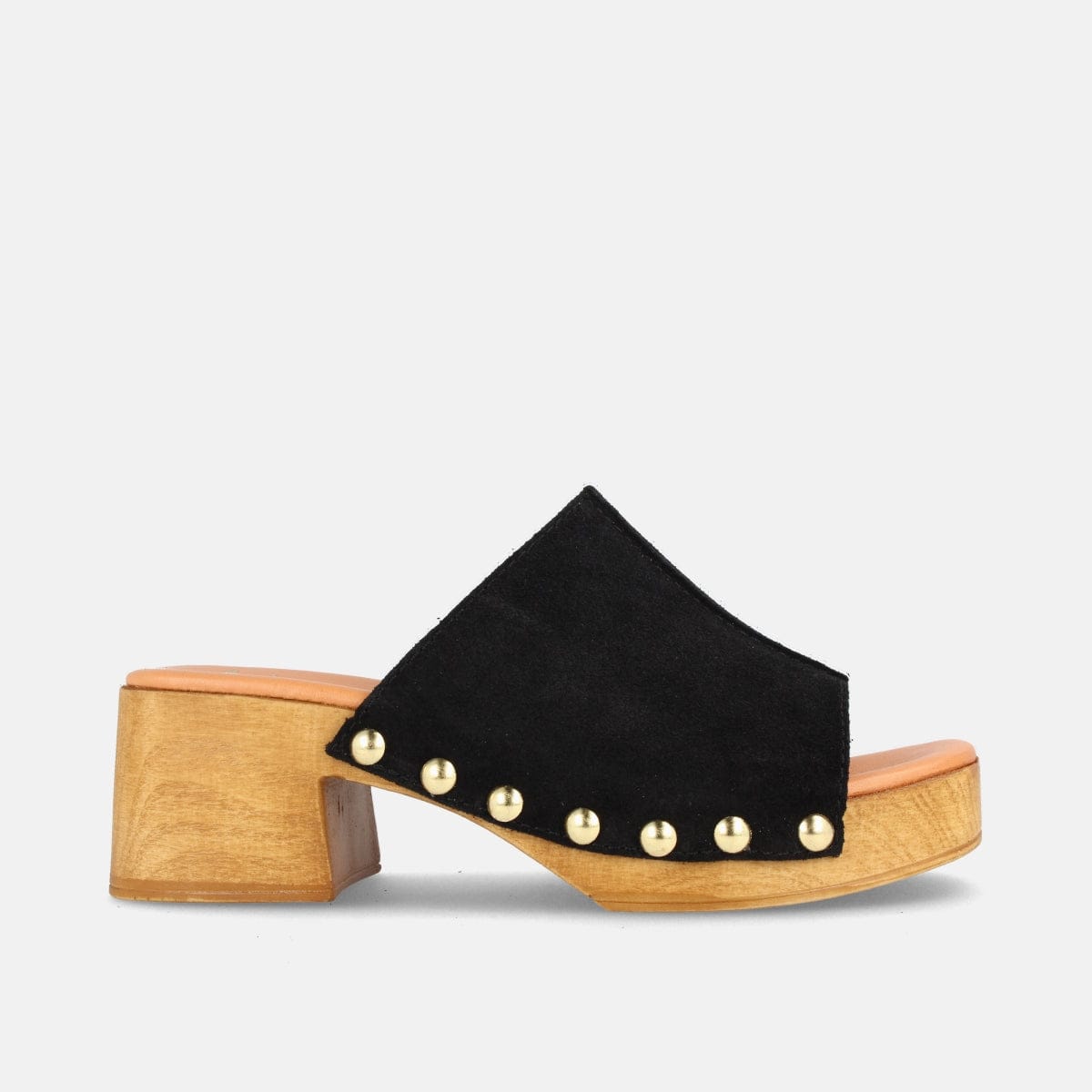 ZUECO PARA MUJER CON PLATAFORMA Y TACÓN MEDIO EN SERRAJE DARIA NEGRO